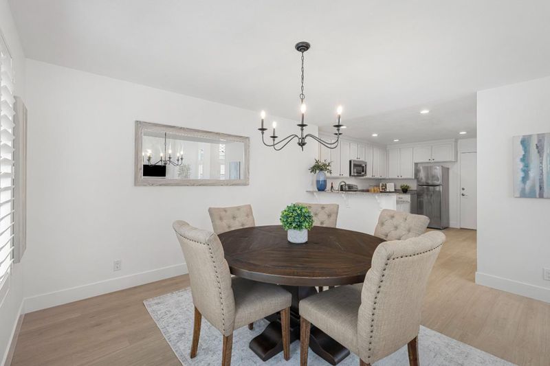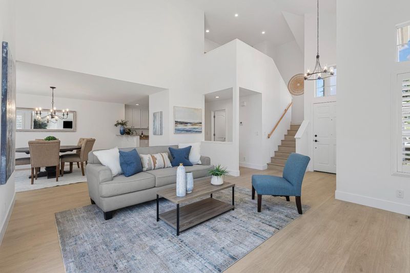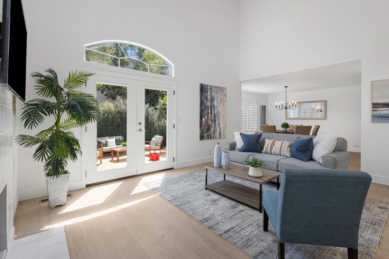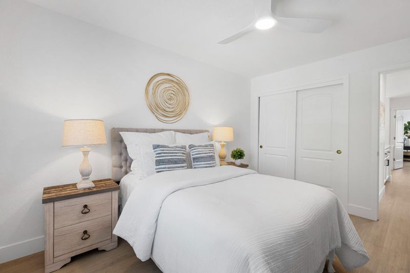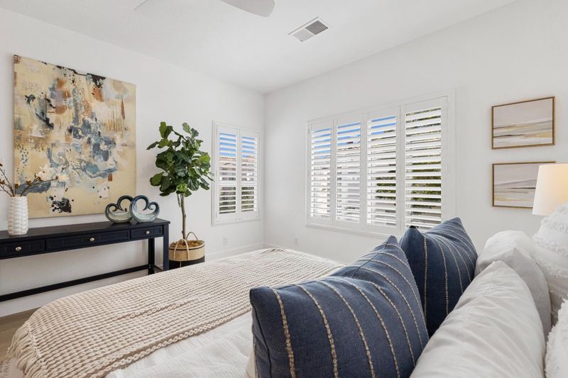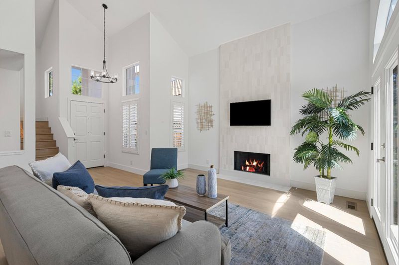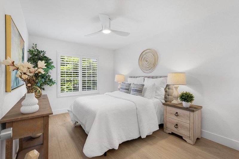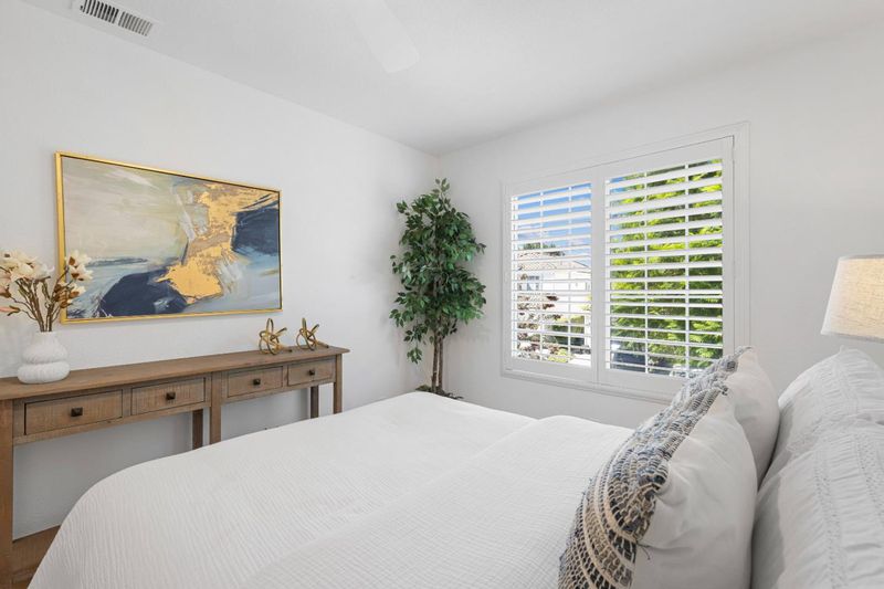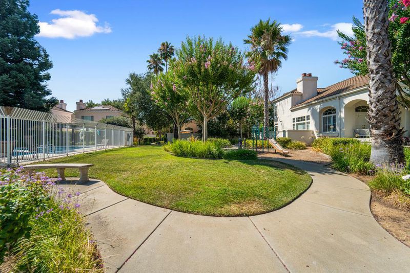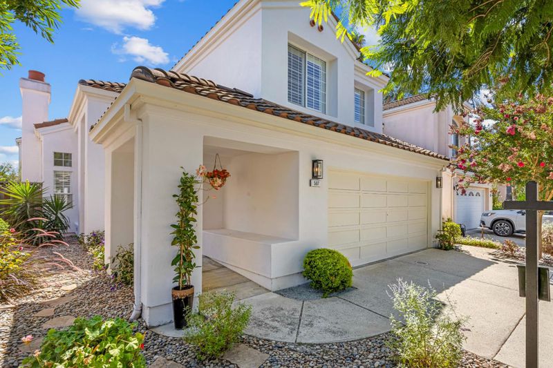 Welcome to 507 Via Sorrento, nestled in the picturesque Mediterranean community of Morgan Hill. This elegant three-bedroom, two-and-a-half-bathroom residence offers a blend of modern living and timeless charm. Spanning 1,609 square feet, the home features vaulted ceilings and an open, gorgeously remodeled floor plan. The kitchen is a culinary delight, boasting ample cabinetry and a breakfast bar that seamlessly flows into spacious dining and living areas, offering serene backyard views. Comfort and efficiency are paramount, with central heat, A/C, and energy-saving dual-paned windows adorned with plantation shutters. The kitchen exudes charm with a stylish breakfast bar, while practical features include a tankless water heater and ceiling fans in each bedroom. Step into your private outdoor oasis, surrounded by a water-efficient garden with a drip line watering system. Unwind at the community pool and spa, and enjoy sustainable living with an eco-friendly solar system lease. Experience a home that truly embodies contemporary elegance.