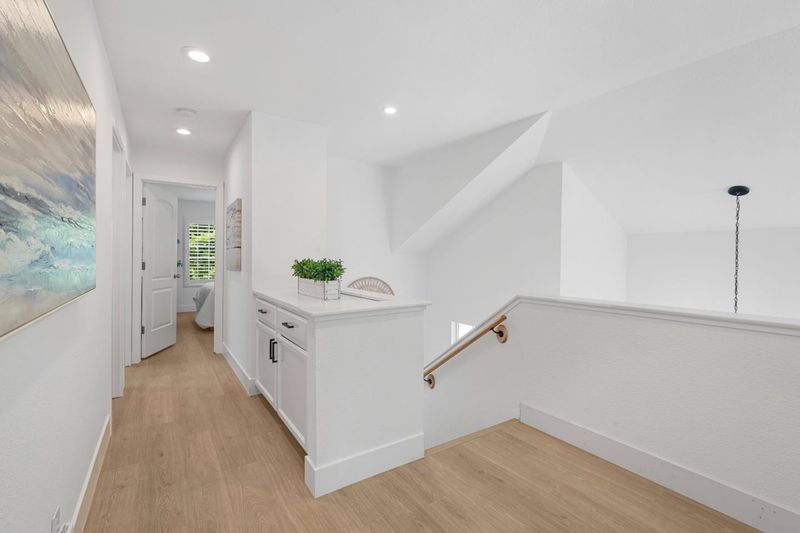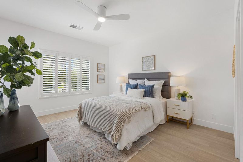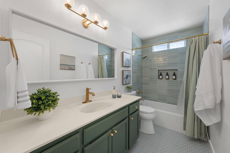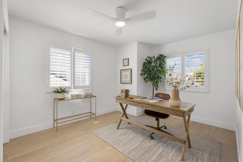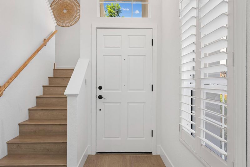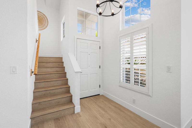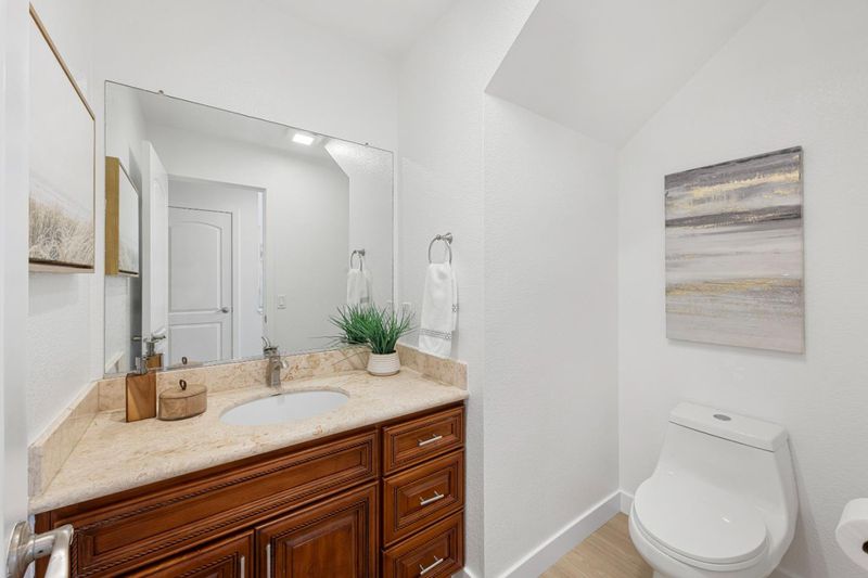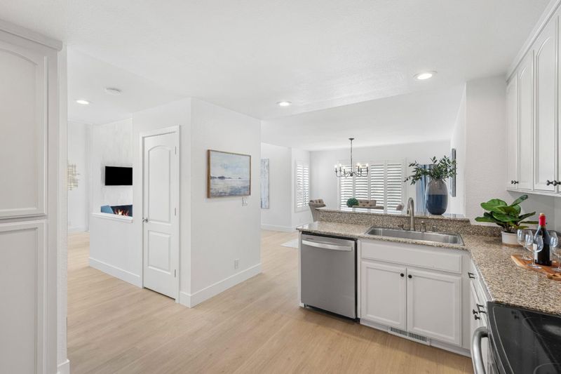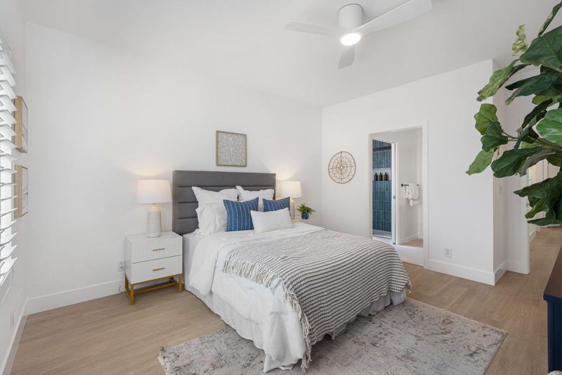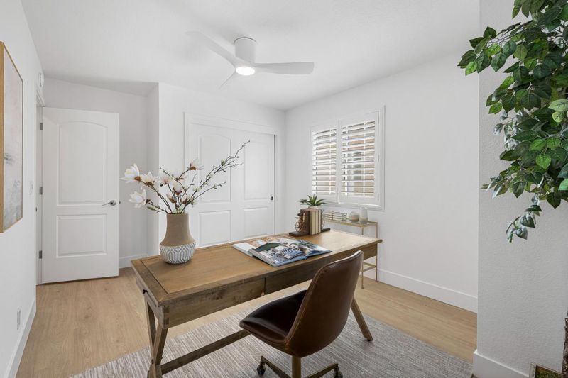 Welcome to 507 Via Sorrento, nestled in the picturesque Mediterranean community of Morgan Hill. This elegant three-bedroom, two-and-a-half-bathroom residence offers a blend of modern living and timeless charm. Spanning 1,609 square feet, the home features vaulted ceilings and an open, gorgeously remodeled floor plan. The kitchen is a culinary delight, boasting ample cabinetry and a breakfast bar that seamlessly flows into spacious dining and living areas, offering serene backyard views. Comfort and efficiency are paramount, with central heat, A/C, and energy-saving dual-paned windows adorned with plantation shutters. The kitchen exudes charm with a stylish breakfast bar, while practical features include a tankless water heater and ceiling fans in each bedroom. Step into your private outdoor oasis, surrounded by a water-efficient garden with a drip line watering system. Unwind at the community pool and spa, and enjoy sustainable living with an eco-friendly solar system lease. Experience a home that truly embodies contemporary elegance.