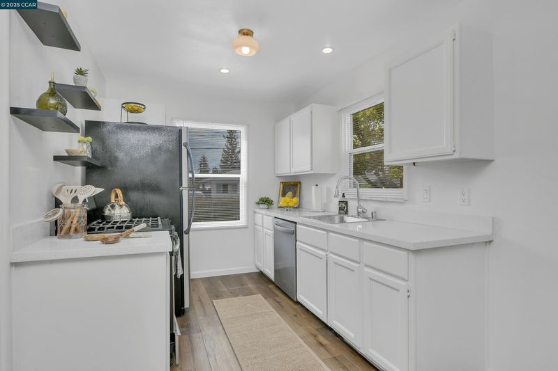 - Dishwasher, Free-Standing Range, Refrigerator, Gas Water Heater, Counter - Solid Surface, Disposal, Range/Oven Free Standing, Updated Kitchen
