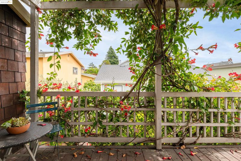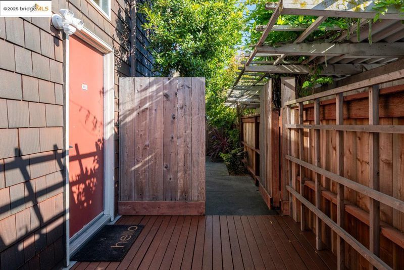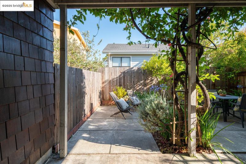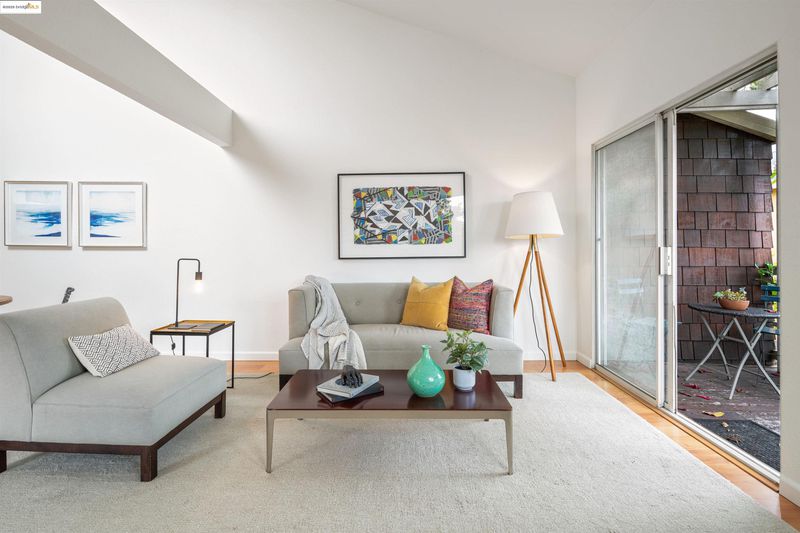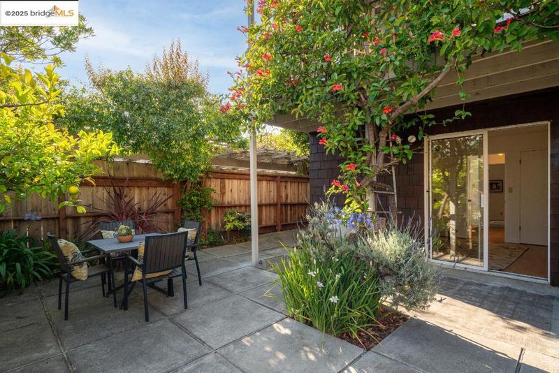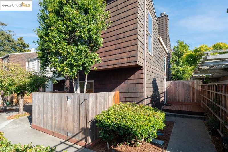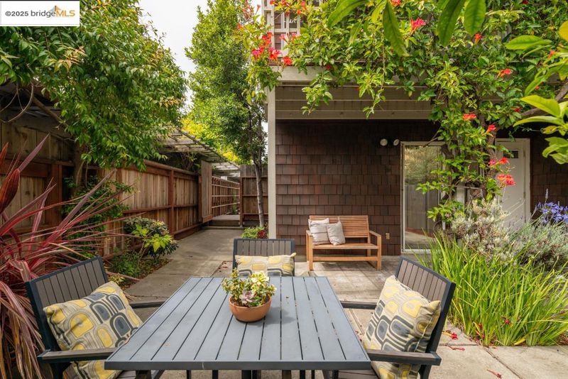 Tucked away from the street in a tranquil setting, 1812 Dwight Way Unit #1/2 is a thoughtfully designed townhome situated in one of Berkeley's most convenient neighborhoods. This modern two-level home is filled with natural light, with a living room that features vaulted ceilings, a cozy fireplace, and large windows that draw the outside in. The updated kitchen includes marble countertops and flows easily into the living area and out to a generously sized balcony lined with a lush trumpet vine—an inviting spot to unwind or entertain among the greenery. The sunny, private, south-facing backyard, in addition to another smaller yard at the north side, offers even more outdoor space for gardening or relaxing in the open air. A full bathroom on the ground floor and a half bath upstairs add to the home's flexible layout. Additional amenities include an in-unit washer and dryer, a central furnace, and two deeded parking spaces near the unit—perfect for convenient access or potential EV charging*. Located just blocks from Ashby BART, San Pablo Park, and local favorites like Berkeley Bowl, Kirala, and Tanzie’s, this home combines comfort, functionality, and an unbeatable central location.