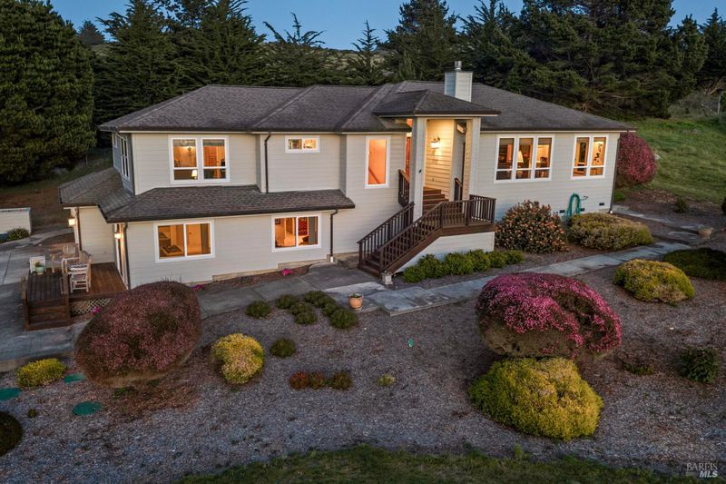 Nestled behind a sprawling 500-acre ranch and elevated above the Sereno Del Mar community, this home offers breathtaking sweeping views of the Pacific Ocean and beach. Crafted with meticulous care by the esteemed local contractor Brian Evans, this 20-year-old residence exudes a sense of newness and elegance. Artfully designed, the two levels seamlessly integrate, ensuring that every room is bathed in the serene ocean vistas. The interior boasts luxurious heated hardwood floors throughout, adding to the home's opulent ambiance. The great room stands out with its custom-built wood cabinets, a brand-new wood-clad refrigerator, and convenient access to a walk-in pantry, functional dumbwaiter, and cozy office. The exterior showcases striking copper gutters and fiber cement siding, complemented by an enclosed generator, a gas line for the BBQ, and an enclosed 1,000-gallon propane tank. The meticulously landscaped garden features professional drip irrigation, creating a lush and inviting outdoor space with minimal maintenance. Easy access to nearby beaches, hiking trails, restaurants and shopping round out the ultimate coastal experience.