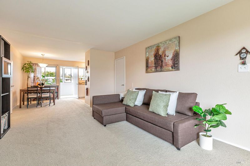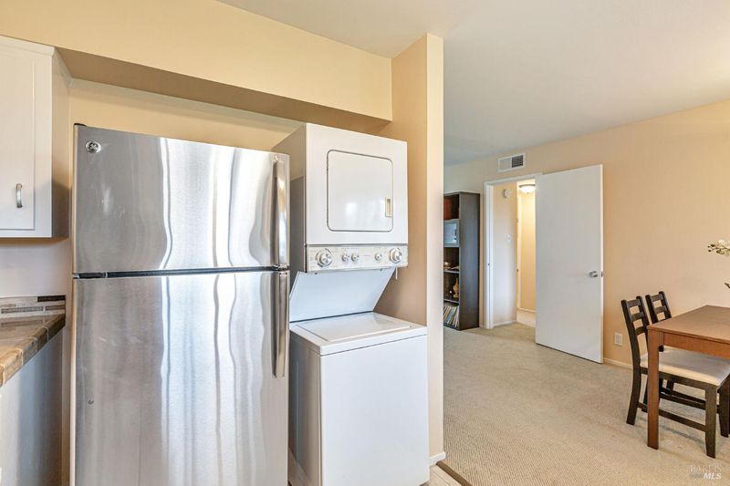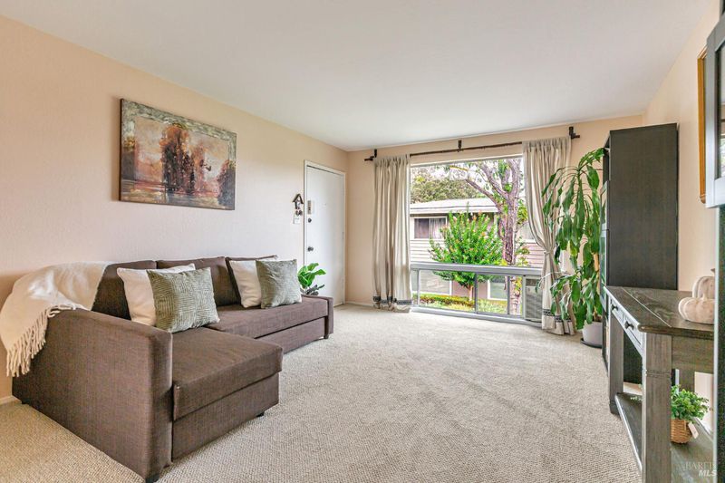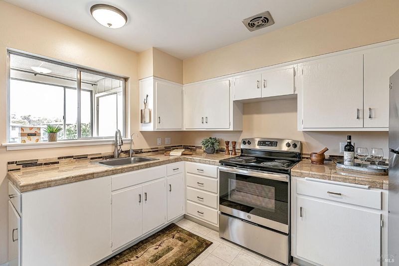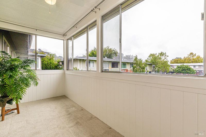 Welcome to this upper-floor 2-bedroom, 1-bathroom co-op condo. The home features Berber carpeting throughout. The kitchen offers tiled countertops with backsplash, stainless steel appliances, and tile LVP flooring, which also extends into the bathroom. A stackable washer and dryer add convenience. The living room includes a large closet for storage, an AC window unit, and large windows that bring in natural light. Both bedrooms feature closets with doors for a clean, finished look. An enclosed sunroom adds extra space and showcases Mt. Tamalpais views with stunning sunsetsperfect for relaxing or a home office. The community includes a beautiful pool, clubhouse, EV charging stations (almost completed), and beautifully landscaped grounds. Conveniently located near shopping, transportation, great hiking, Oleander Park, Kaiser hospital, YMCA and within the sought-after Miller Creek school district. The carrying charges cover property tax, PG&E, garbage, water, exterior and some interior maintenance including furnace, water heater, some plumbing and electrical, landscape and insurance walls in. This is San Rafael living at its finest!