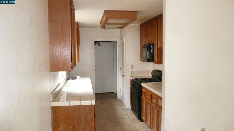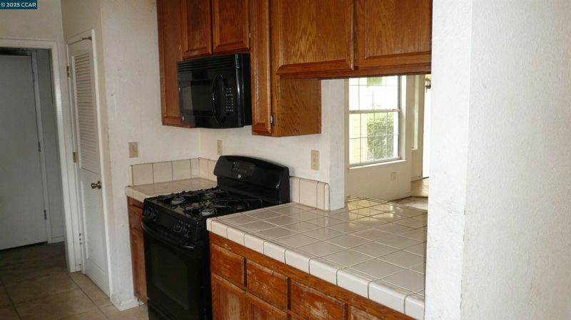 - Dishwasher, Electric Range, Microwave, Gas Water Heater, Tile Counters, Electric Range/Cooktop, Disposal