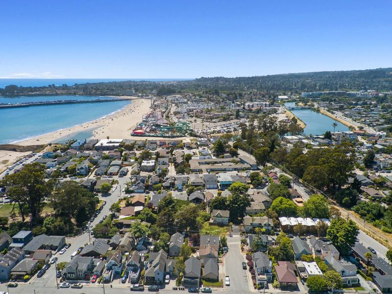 Welcome to your coastal escape in the heart of Seabright, one of Santa Cruz's most sought-after beachside neighborhoods. Nestled on a quiet, tree-lined street just steps from Seabright Beach, this beautifully updated home is within walking distance of the Yacht Harbor, local restaurants, coffee shops, the Boardwalk, and downtown. Inside, you'll find vaulted ceilings, skylights, tall windows, and exposed beams that fill the space with natural light and coastal charm. The home features 3 bedrooms, 2 remodeled bathrooms, and multiple living areas-including a cozy family room with a gas fireplace and a formal living and dining area. The updated kitchen boasts quartz countertops, stainless steel appliances, custom cabinetry, and a breakfast bar. Outside, enjoy a private backyard with a deck that is perfect outdoor dining or just relaxing after a day at the beach. A two-car garage offers ample storage for all your beach gear. This turn-key home is ideal as a full-time residence or a dreamy beach getaway. Come experience the laid-back charm of Seabright--just steps from the surf and sand.