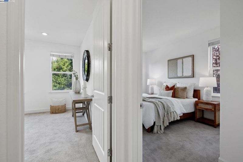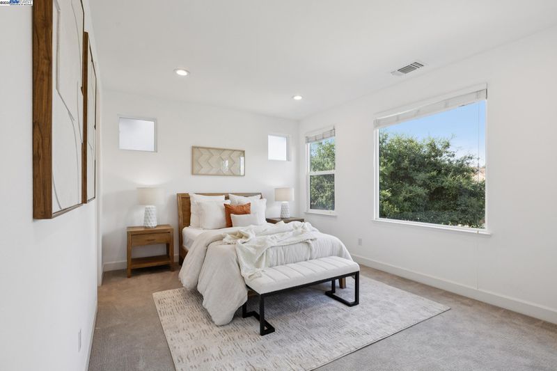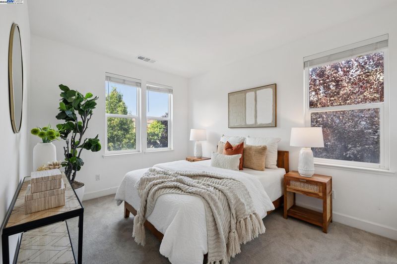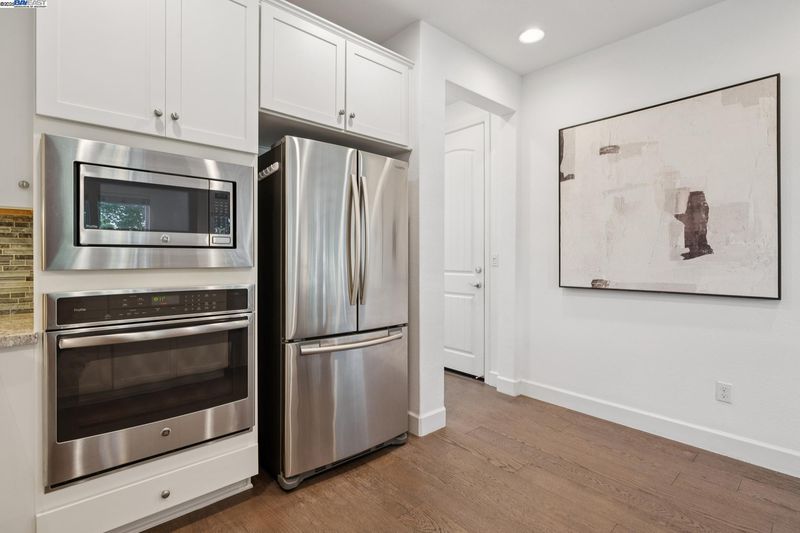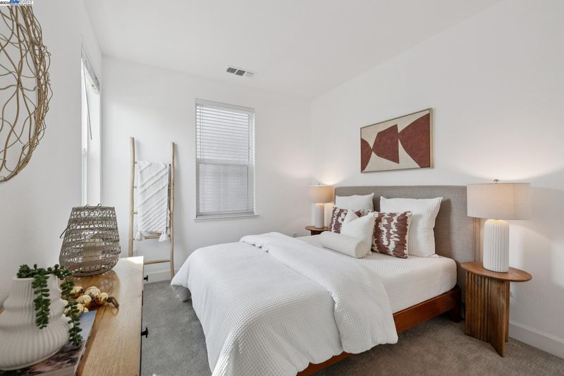 Nestled in the desirable Burbank community of Hayward, this stylish 3-bedroom, 2.5-bath single-family home offers the perfect blend of modern comfort, thoughtful design, and a premium park-facing location. Built in 2017 by Tri Pointe Homes, this two-story residence spans 1,692 sq ft and sits on a well-positioned lot with only one side neighbor and direct views of the community greenbelt. Step inside to a freshly painted interior that radiates warmth and invites you to move right in. The heart of the home is a contemporary chef’s kitchen, featuring granite countertops, a full-height mosaic tile backsplash, stainless steel appliances, and an oversized island with bar seating, perfect for casual meals or entertaining friends and family. The open-concept main level flows seamlessly into the dining and living areas, creating a connected and airy living space. Upstairs, you’ll find three generously sized bedrooms, including a tranquil primary suite with a walk-in closet and a spacious ensuite bath. The smart 2.5-bath layout ensures both functionality and privacy, making daily life and hosting guests a breeze. Enjoy the benefits of newer construction, including dual-pane windows, energy-efficient systems, and low-maintenance finishes.