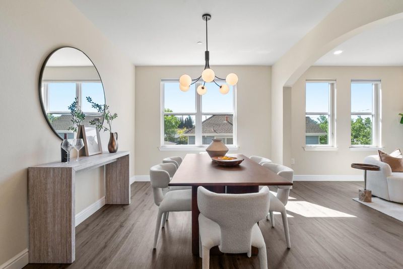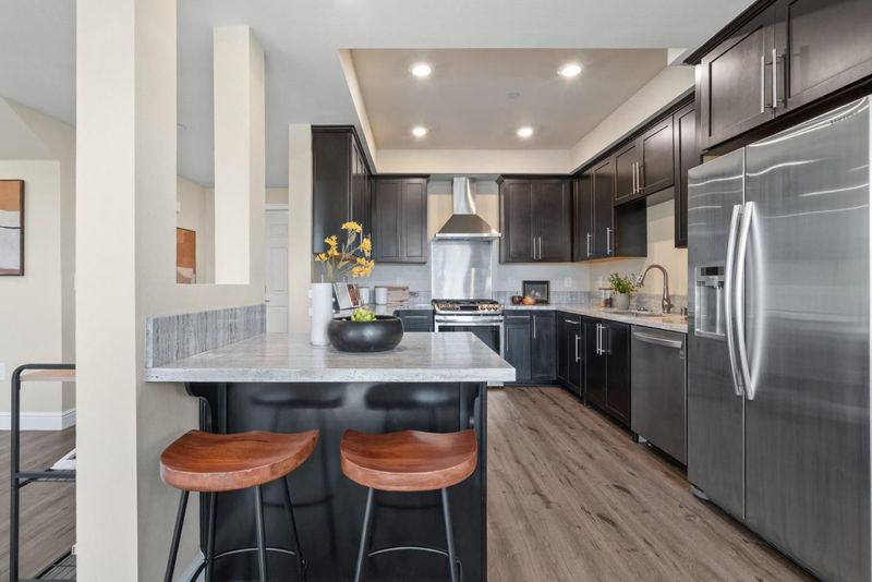 Rare opportunity to own a spacious corner unit that truly lives like a single-family home. This 4-bedroom, 3-bath layout offers great flexibility, including a desirable bedroom and full bath on the main level ideal for guests, extended family, or a home office. The bright, open living space is filled with natural light and enhanced by a quiet setting with no neighbors above or below. The kitchen features stone countertops, sleek cabinetry, stainless steel appliances, and a breakfast bar that flows seamlessly into the dining and living areas. Upstairs, you will find three additional bedrooms, all generously sized with great light and open views plus a huge walk-in closet. Nest thermostat for energy saving. Enjoy a secured building with amenities including a gym, clubhouse, and rooftop deck, plus two reserved garage parking spaces and additional 8x8x10 secured storage room. Prime Santa Clara location minutes to Nvidia, Apple, Santana Row, Google bus stop around corner, and walking distance to Santa Clara Town Center and Santa Clara University.