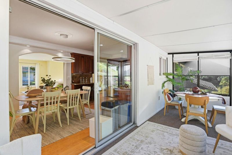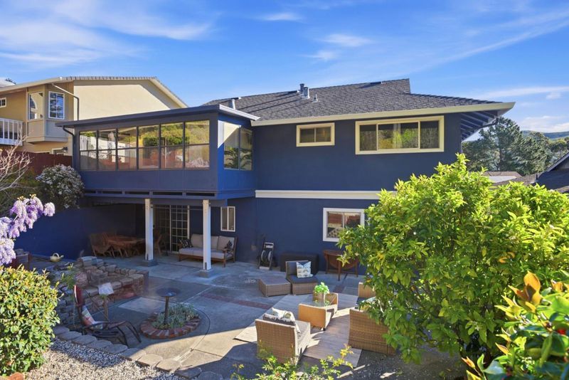 Nestled in Pacifica's desirable sun belt, this warm and inviting home offers comfort and charm in a serene setting. The living room, complete with a classic fireplace, flows seamlessly into the dining area and a bright sunroom, an ideal spot to enjoy year-round garden views. Fresh interior and exterior paint create a crisp, move-in-ready feel. The kitchen features granite countertops, beautiful wood cabinetry, and hardwood floors that continue throughout, adding timeless appeal. Upstairs, you will find three well-appointed bedrooms and two updated full bathrooms. The lower level offers exceptional versatility with a spacious bonus room, perfect as an additional bedroom, family room, or guest space, along with a third full bath and direct access to a private patio.Step outside to a beautifully cultivated orchard with a variety of fruit trees and shrubs, creating a peaceful retreat for relaxation or entertaining. Located just five minutes from hiking trails and the beach, this home offers the perfect blend of nature, comfort, and convenience. Enjoy an easy, scenic commute with ocean views to San Francisco and the Peninsula, plus convenient access to BART and Caltrain for added flexibility.