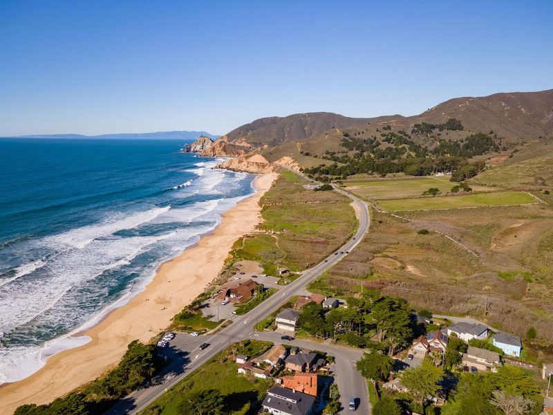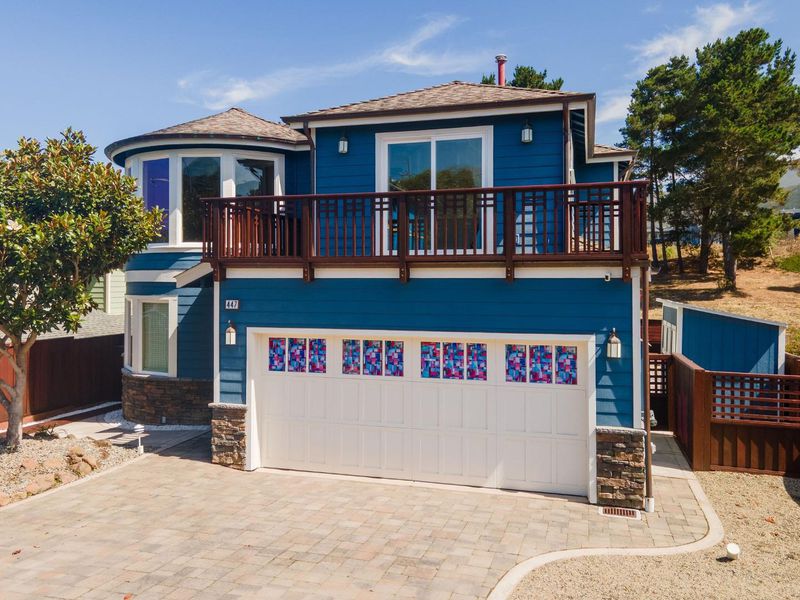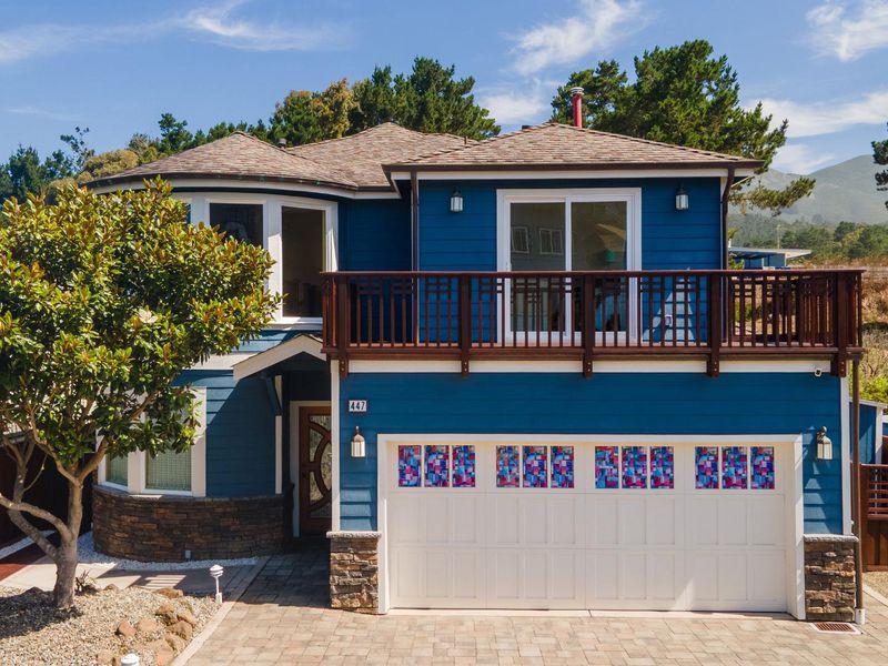 Welcome to this impressive custom-built 3-bedroom 2.5-bathroom home in the coastal town of Montara. Spanning approximately 1750 square feet, this high-quality residence offers a harmonious blend of craftsmanship, comfort, and natural beauty. Step inside to discover radiant heated travertine floors on the lower level, complemented by elegant curved plaster walls and a cozy gas fireplace. The kitchen features stainless steel appliances, granite countertops, and rich cherry wood cabinetry, all bathed in abundant natural light. A striking curved cherry wood staircase leads to the upper level, where you'll find three spacious bedrooms. The primary suite boasts vaulted ceilings, curved architectural walls, and a luxurious bathroom with a green slate shower, an oversized jetted tub, and walk-in closet. Outside, enjoy ocean views from your private backyard oasis, complete with a gas stone fire pit perfect for relaxing or entertaining under the stars. Just a short walk from Montara State Beach, scenic hiking trails on Montara Mountain, and historic Pt Montara Lighthouse. This home offers easy access to Hwy 1 and a short commute to San Francisco, Silicon Valley, and SFO. Don't miss this rare opportunity to own a thoughtfully designed coastal home in one of the most picturesque communities.