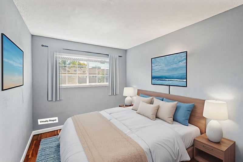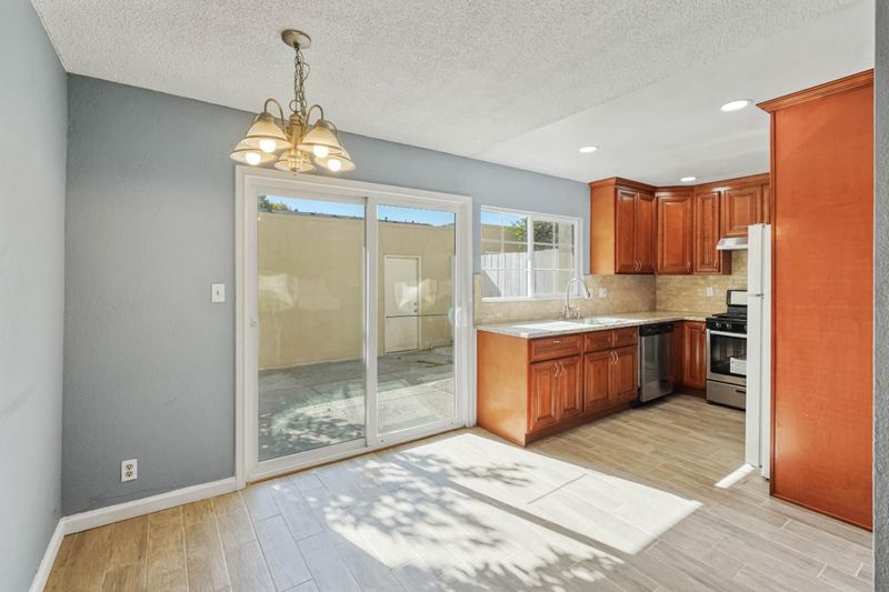 Welcome Home! Located in a vibrant part of San Jose, this delightful 3-bedroom, 1.5-bathroom townhouse offers 1,157 sq. ft. of living space on a 1,360 sq. ft. lot in a family-friendly community with a low HOA. A beautiful kitchen featuring Granite countertops, newer plumbing pipes, an elegant Marfil polished marble brick backsplash, and Cherry-wood cabinets. Dining area beyond the kitchen adjacent to a patio that leads to a two car garage. A half bathroom and laundry room conveniently located downstairs. Newer interior painting. Upstairs, you will find an upgraded bathroom with beautiful Glass decor. Three nice size bedrooms. This property is centrally located near by schools, parks, restaurants, grocery stores, easy access to freeways and more. A must see!
