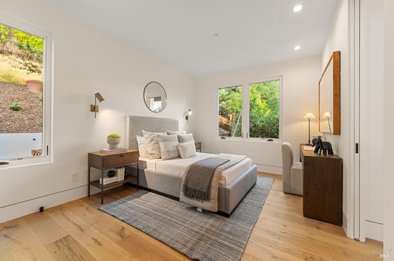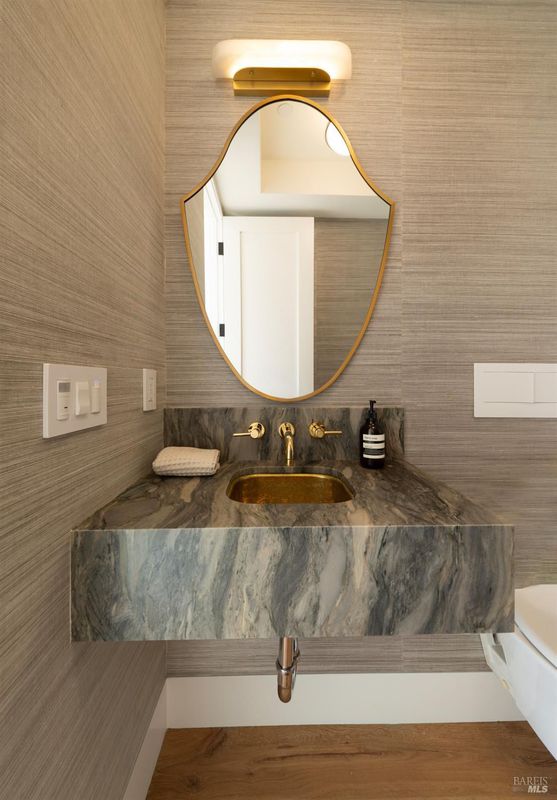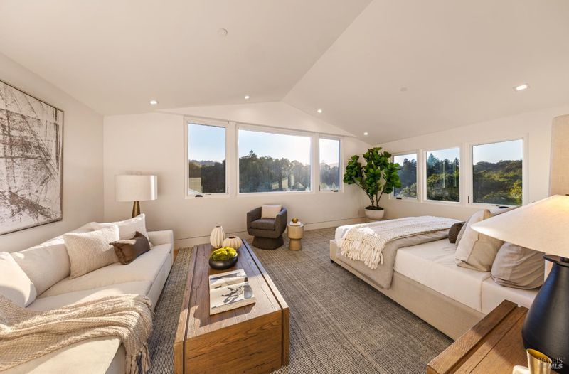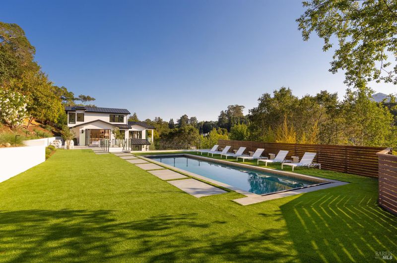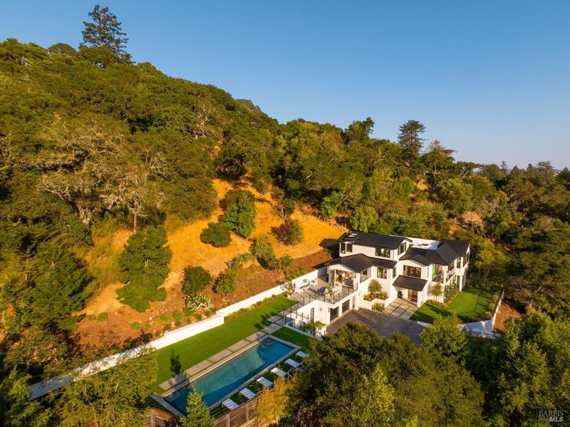 Outstanding execution of design in this just completed remodel! Fabulous blend of high end, designer lighting, designer tile, custom fixtures, and grand scale, open spaces with soaring ceilings throughout! Chic great room opens directly to the resort like grounds for seamless indoor/outdoor living. Secondary adjacent living space with soaring ceilings offers flex use. Dual options for hotel like primary suite. Contrary to many homes on Laurel Grove, this house is set far back behind gates enjoying complete privacy. Resort like grounds include sleek in ground pool, two sweeping level grounds, ample outdoor entertaining spaces with seamless indoor/outdoor living throughout. Huge parking court for easy turn around + oversize garage. Blocks from the award winning K-8th grade Ross School, Pixie Park, Ross Common, and Phoenix Lake's many recreational opportunities including hiking, biking, and running. South facing with all day sun.