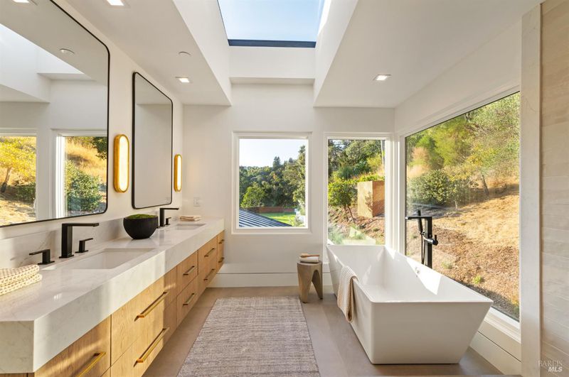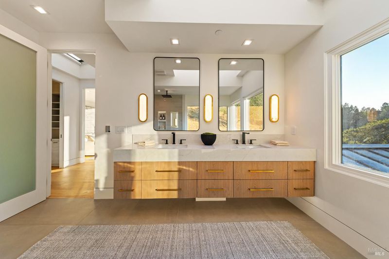 - Double Sinks, Low-Flow Toilet(s), Multiple Shower Heads, Radiant Heat, Shower Stall(s), Skylight/Solar Tube, Soaking Tub