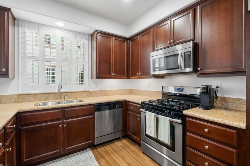 "Take a look! Just like new". Beautifully updated laminate flooring. Close to everything! Immaculate corner unit in the fabulous Montage Community near Las Positas College. Open concept with custom shutters, fresh paint and recessed lighting. Large kitchen with SS appliances, granite counters and a breakfast bar. Flex space for office, exercise equipment, reading nook etc leads to a cozy balcony. Primary bedroom has an ensuite bath and huge walk-in closet. There is an inside laundry room and attached garage. Ample storage throughout. Enjoy the resort-like amenities that Montage has to offer including a swimming pool, spa, clubhouse and fitness center. Close to schools, shopping, hiking trails and easy access to the freeway.