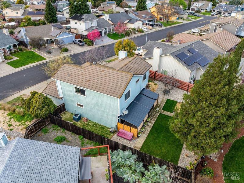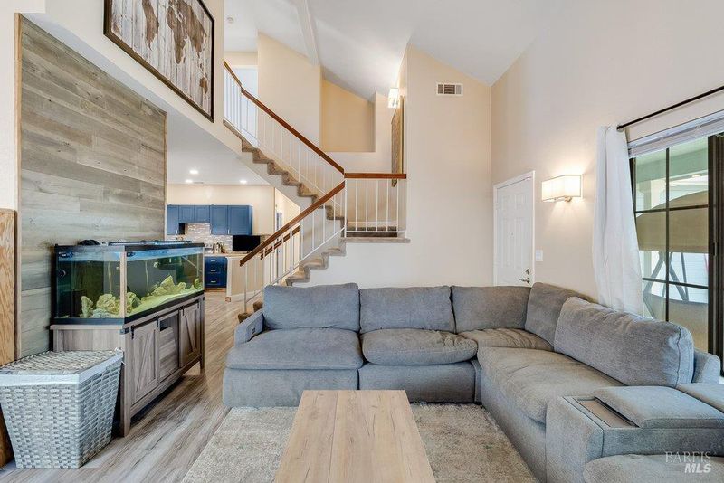 Welcome to 821 Saddle Horn Trail, a beautifully updated home designed for comfort, flexibility, and everyday living, ideally located in Vacaville's highly sought-after Travis Unified School District and just minutes from Travis Air Force Base. Whether you're relocating to the area or putting down roots, this home offers the space and functionality you've been looking for. The main level features a full bedroom and bathroom, perfect for visiting guests, multi-generational living, or a quiet home office. At the heart of the home, the updated kitchen is both stylish and practical, complete with a center island, soft-close cabinetry, pantry space, newer appliances, and a built-in wine fridge. It opens seamlessly to the main living areas, where vaulted ceilings and a cozy wood-burning fireplace create a welcoming space to gather, relax, and make memories. Upstairs, the spacious primary suite offers a true retreat with dual closets, including a walk-in, and a private en-suite bath. An additional bedroom and full bathroom provide comfortable space for family or guests. Step outside to a low-maintenance backyard designed for easy California living, featuring a covered patio, ambient lighting, and thoughtful drainage for year-round enjoyment. With updated bathrooms, newer flooring and appliances, and a move-in ready feel throughout, this home allows you to settle in with ease from day one. Conveniently located near parks, schools, shopping, and commuter access, 821 Saddle Horn Trail offers the perfect balance of comfort, convenience, and community.