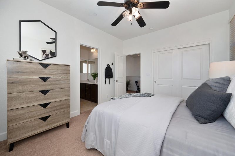 Ideally located near Folsom High, Hwy 50, and Intel, this spacious 4-bed, 3-bath home in the Turnstone Community built in 2013 offers the perfect blend of comfort, convenience, and prime Folsom living. Step inside to a freshly painted interior and exterior that exude warmth and curb appeal. The flexible floor plan features a downstairs bedroom and full bathroom, ideal for guests or multi-generational living. The inviting living room is elevated by elegant wood shutters and a cozy ambiance that flows seamlessly into the kitchen and dining area making it the perfect space to gather and enjoy life at home. Upstairs, you'll find a small, versatile space perfect for a home office, study nook, or quiet reading area. The expansive primary suite is privately situated, creating a peaceful retreat with a large walk-in closet, soaking tub, freestanding shower, and a spacious dual-sink vanity. Two additional bedrooms share a beautifully designed Jack-and-Jill bathroom, offering comfort and functionality. Step outside to a sparkling backyard oasis with lush grass, garden areas, fresh bark, privacy lattice, and a stylish paver patio ideal for relaxing evenings or weekend entertaining. Don't miss this opportunity to own a stunning home in one of Folsom's most sought-after communities!