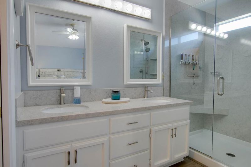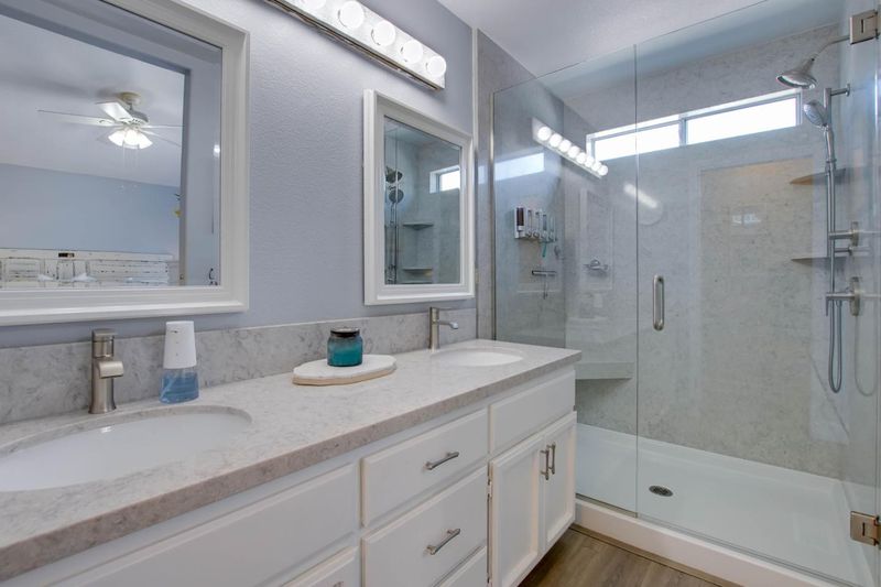 - Double Sinks, Shower over Tub - 1, Stall Shower