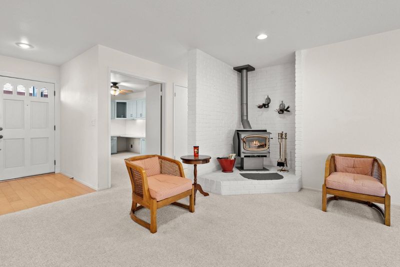 Welcome to this very clean and well-maintained single-level home located in the desirable Adult Village community of Watsonville. Offering 2 bedrooms, 2 bathrooms, plus a dedicated office, this thoughtfully designed 1,337 sq ft residence combines comfort, functionality, and easy living. The spacious kitchen provides ample cabinetry and counter space, while the open living area features a wood-burning stove, creating a warm and inviting atmosphere. Dual-pane windows and ceiling fans throughout enhance comfort and energy efficiency. The home offers excellent closet space and abundant storage throughout. Enjoy outdoor living in the fully landscaped yard including a private backyard patio, front porch and storage shed. The charming front porch patio with deck is perfect for BBQs or relaxing outdoors. Laundry and a utility sink are conveniently located in the 2-car garage. Community amenities include tennis courts, a community garden, and a park located directly across the street. Ideally situated close to Staff of Life grocery, Fruition brewery, cafés, and restaurants, with easy access to the coastjust 15 minutes to Palm Beach State Park and Pajaro Dunes. A wonderful opportunity for those seeking a low-maintenance lifestyle in a friendly 55+ community.