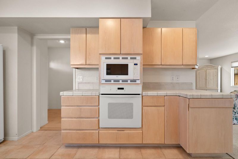 - 220 Volt Outlet, Cooktop - Electric, Countertop - Tile, Dishwasher, Garbage Disposal, Hood Over Range, Microwave, Oven - Built-In, Oven - Electric, Refrigerator