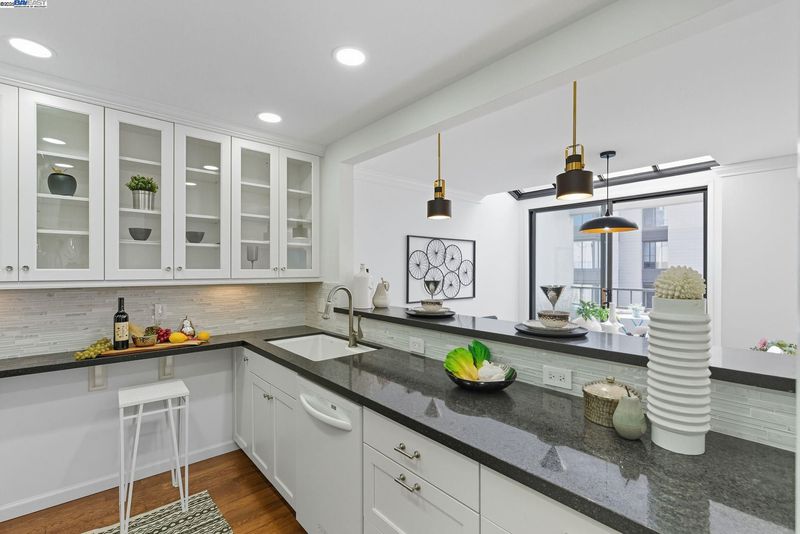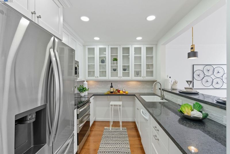 - Dishwasher, Electric Range, Microwave, Breakfast Bar, Breakfast Nook, Stone Counters, Electric Range/Cooktop, Disposal, Pantry, Skylight(s), Updated Kitchen