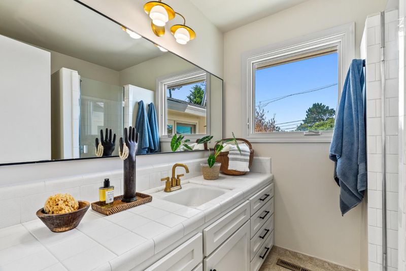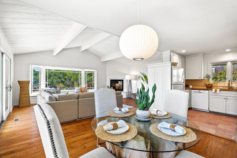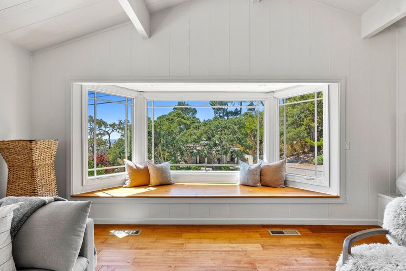 Nestled on a peaceful street just a few blocks from the heart of Carmel by the Sea, this delightful light-filled home is a perfect coastal retreat for hosting family and friends. With vaulted ceilings and warm wood floors, the living room, featuring a cozy bay window with ocean views, seamlessly flows into the kitchen, dining area, and out onto the expansive deck, ideal for memorable gatherings with sweeping ocean views. Relax in the bay window nook, enjoy the serene backyard with drought-tolerant landscaping, and unwind in your private oasis. Freshly painted and complete with a two-car garage, this home is just a short stroll to downtown and a local trail that leads straight to the beach.