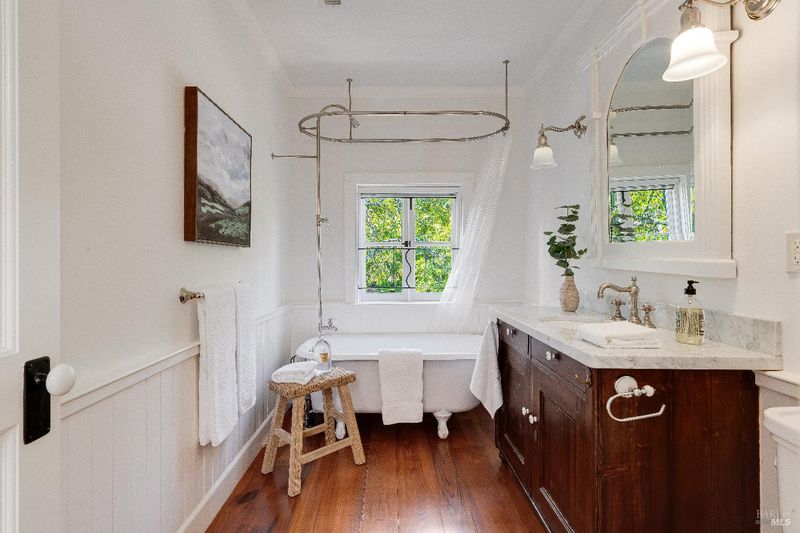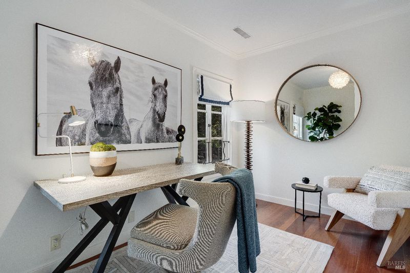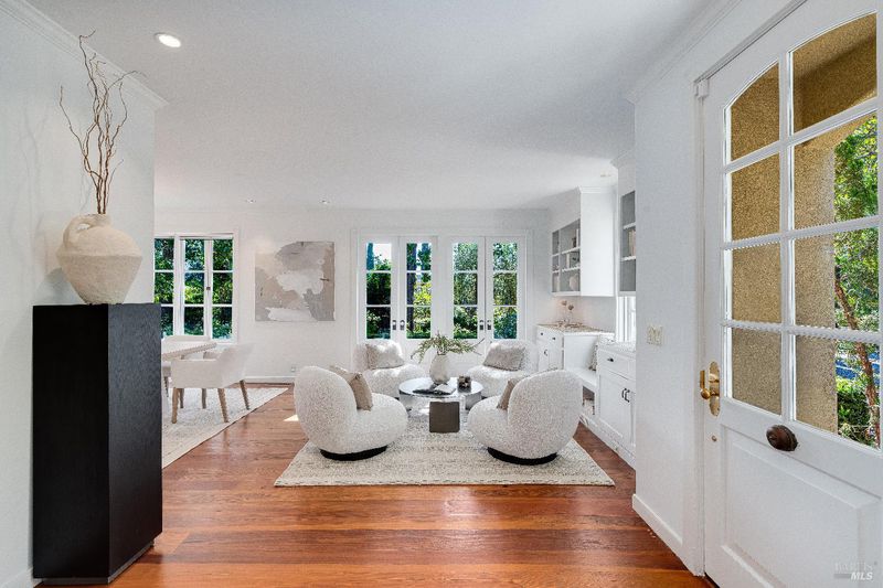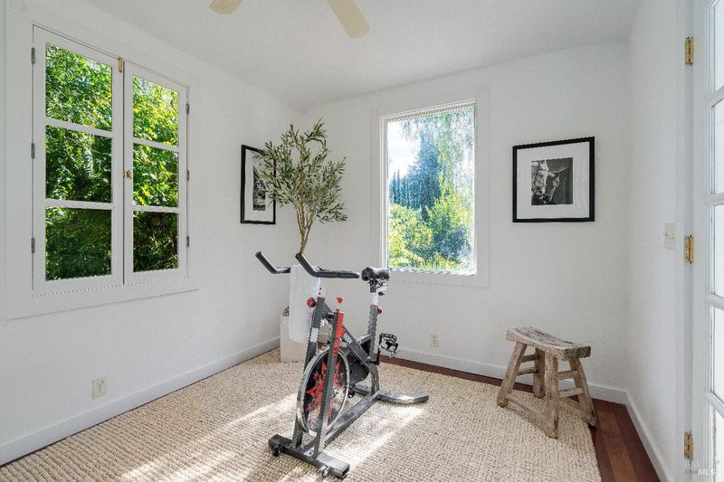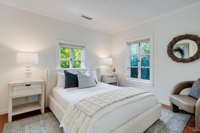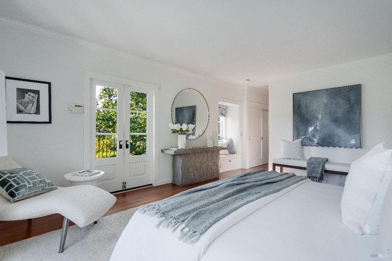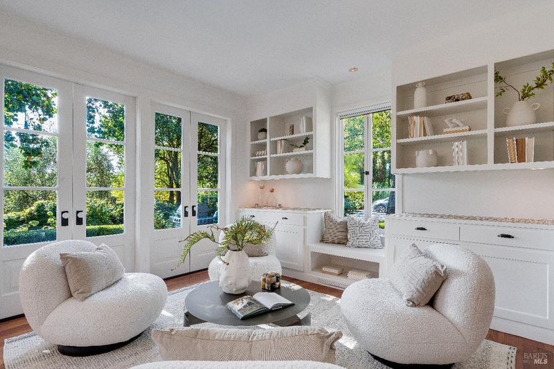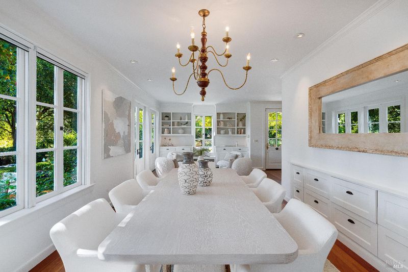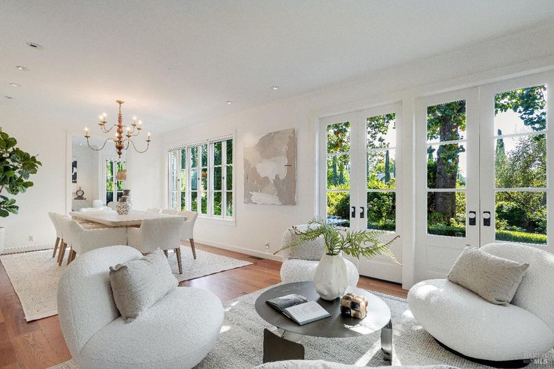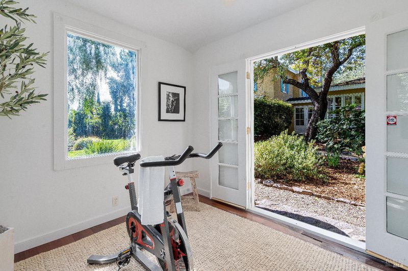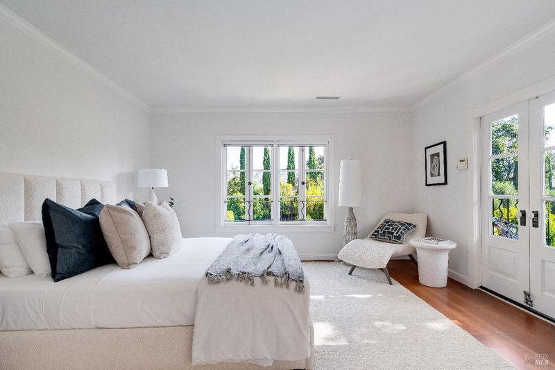 A rare jewel in the heart of town, this French country farmhouse is a sanctuary of elegance and ease. Arrive through a tree-lined alle into an inviting motor court where the handsome faade and timeless shutters give way to interiors reimagined by Howard Backen with exquisite craftsmanship. Sunlight dances across fir floors, filling spaces designed for connectiona living room with fireplace, a dining room that spills onto a terrace, perfect for alfresco dining, and a dream kitchen with pocketing doors open to the rear lounging terrace. Upstairs, the primary suite offers balcony views and a marble-clad bath while 3 additional bedrooms provide guest accommodations. A bright family room invites relaxation, and an extra room with bath suits staff or office use. Beyond the walls, expansive lawns, towering cypress trees, and lush gardens invite quiet contemplation and farm-to-table living, while a play structure, gym/office outbuilding, and storage shed add thoughtful versatility. Blending rustic charm with refined sophistication, this Yountville oasis is a retreat to savor, offering the grace of country living with the vibrancy of Yountville's world-class dining just moments away.