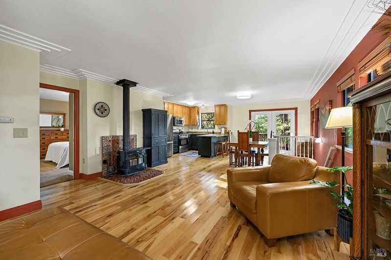Nestled on a spacious corner lot (12502 sq ft), this 3 bdrm, 2 bath retreat is the country escape that you've been dreaming of. Its open floor plan flows seamlessly onto the large rear deck with fantastic woodland views...ideal for morning coffee or dining al fresco. Gorgeous wood floors make the living area shine. Primary suite has views to the rear. Use the 2nd and 3rd bedrooms for guests, a media room or an office. Large laundry room w/plenty of storage and workshop space. Relax by the firepit in the evenings. Beautiful landscaping and room for veggies. A carport and off-street parking complete the picture. This property can make your dreams come true!