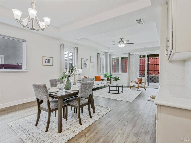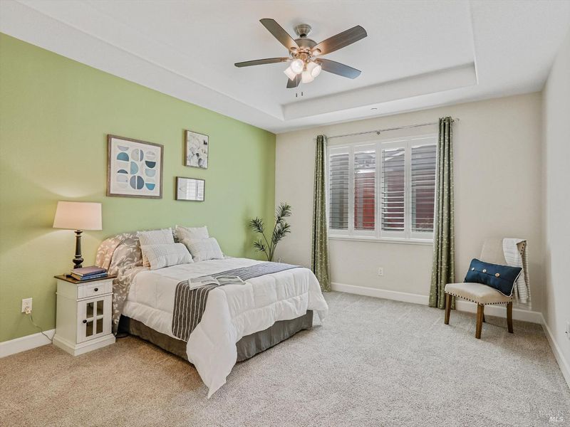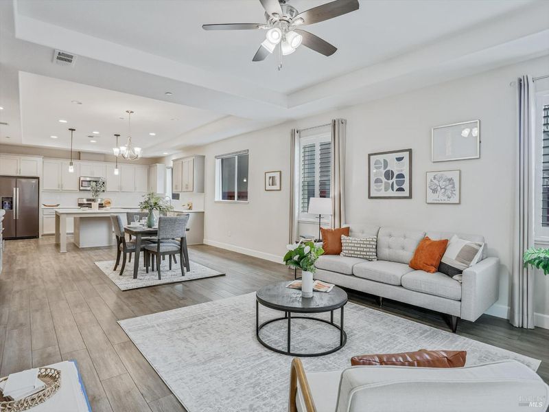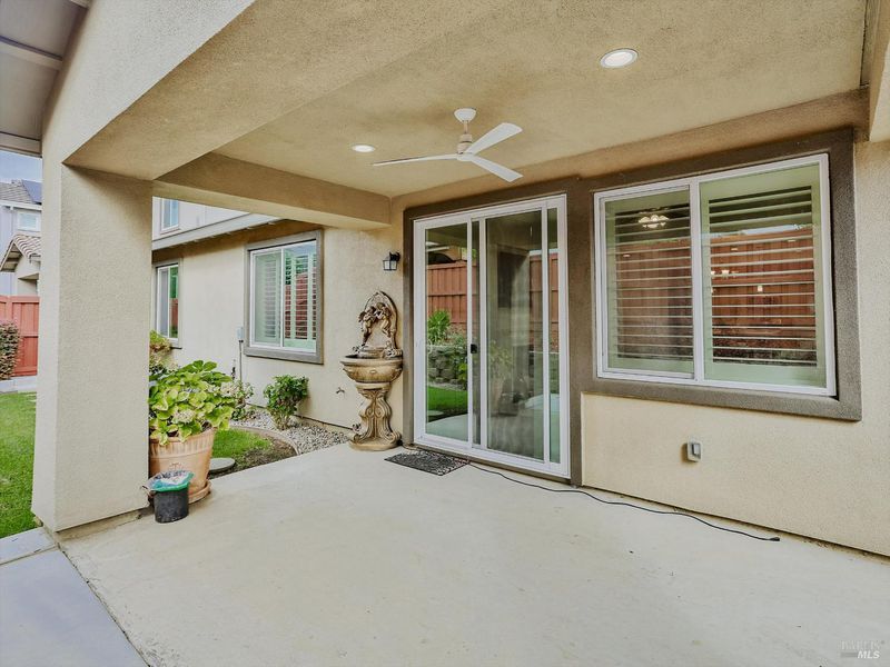 Welcome to 3121 Muse Way in Fairfield - a beautiful maintained single-story home offering 4 spacious bedrooms, 3 full bathrooms and 2105 sq. ft. of modern living space. Built in 2019 with durable tile roof. This home blends comfort and style throughout. Step inside to find brand new carpet in all bedrooms, custom drapes and elegant window shutters in primary bedroom, front room and living room. The open concept kitchen features upgraded cabinetry and a gas stove, seamlessly flowing into the inviting living area complete with custom-built shelving. The primary suite boasts dual sinks, a walking closet and plenty of natural light. Convenient features include a laundry room with built-in sink and covered patio perfect for relaxing or entertaining outdoors. Move-in ready and thoughtfully upgraded - this home is a must-see!