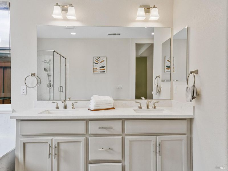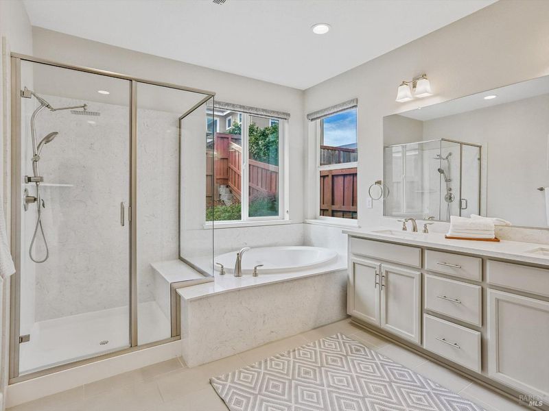 - Double Sinks, Shower Stall(s), Soaking Tub, Walk-In Closet, Window