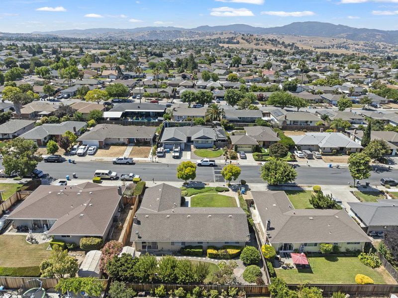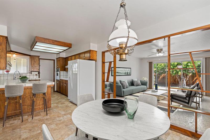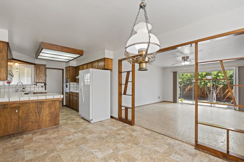 Welcome to this charming 3-bedroom, 2-bathroom well built, Albright home located in the Sunnyslope Highlands subdivision. Spanning 1,680 sq ft, this residence offers a well-designed kitchen featuring an electric cooktop, built-in oven, refrigerator, dishwasher, and spacious tile countertops for those meal preps or gatherings. The eat-in kitchen provides a great space for meals, while the attached family room offers ample space for relaxation. This home is equipped with central forced air heating and a fireplace in the family room for added warmth with great views of the beautiful backyard. Ceiling fans are installed throughout to help keep the home cool on those warmer days. The laundry area is located in the garage alongside the included washer and dryer just off the dining room/kitchen area. This home is located within the Hollister Elementary School District near Cerra Vista School, this property is perfect for families seeking close proximity to local schools. The spacious lot offers 7,501 sq ft, with a 2-car garage and lots of storage. The backyard has newer fencing and many trees for shade as well as a fruitful lemon tree. This house is just awaiting your special touches to make it your home. This home won't last long. Virtual staging photos.