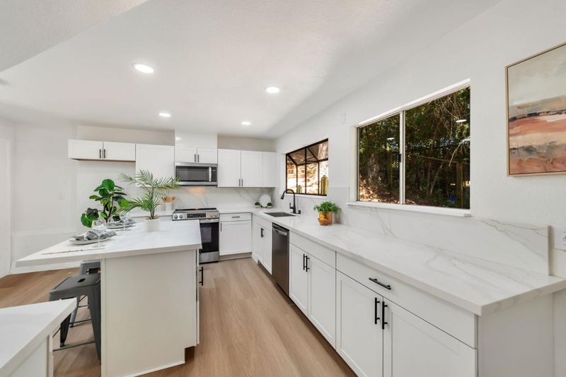 Amazing opportunity to own a single family home with great schools, Los Gatos address, privacy, and style! Beautifully remodeled and move-in ready. You'll enjoy new natural colored flooring throughout, a brand new kitchen with chic finishes complete with an island for cooking and entertaining. All new bathroom just waiting for its new owner. Incredibly convenient location with NO windy roads and a quick 9 minute drive to vibrant downtown Los Gatos. Unwind at the end of day on your wood deck overlooking trees. You will appreciate the hard work of almost all recently installed dual pane windows and fresh exterior and interior paint, and new roof! Don't miss the indoor laundry and 2-car garage! Being part of Redwoods Estates, residents enjoy 2 community parks, sparkling pool, and benefits of the pavilion plus nearby pizza and bbq restaurant and convenience store. Top-rated Los Gatos schools. You could buy a townhome with high dues, but why when you have so much more here with a low-maintenance property! Sale is subject to CA Civil Code 2924 m/o.