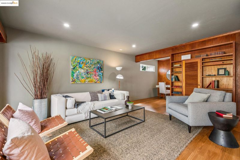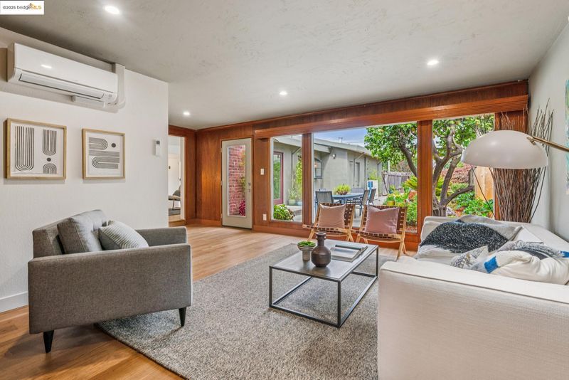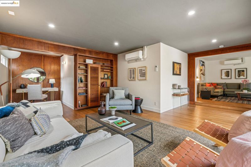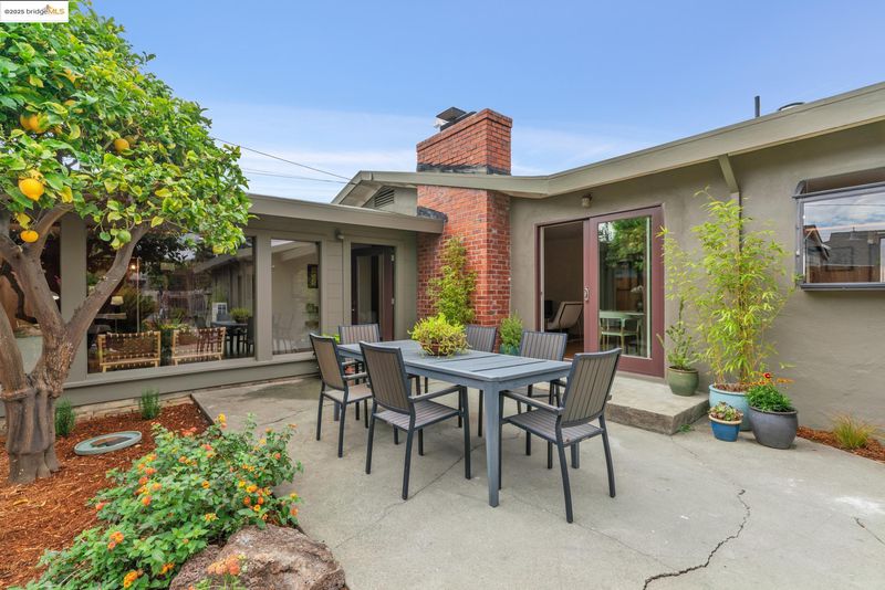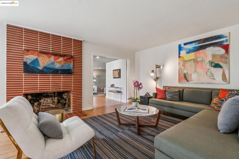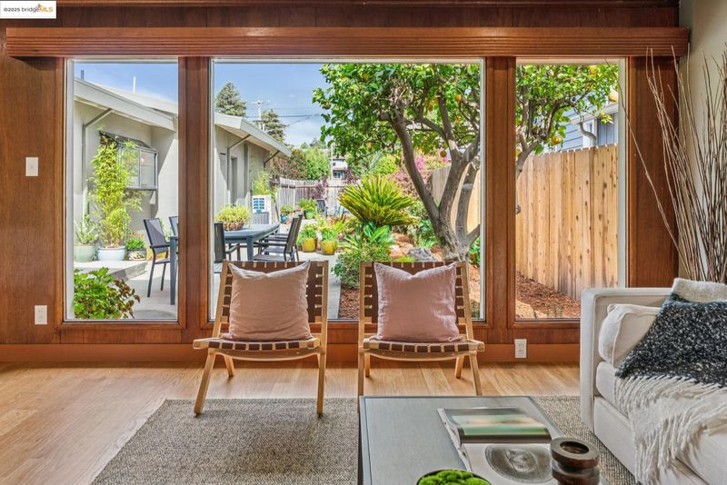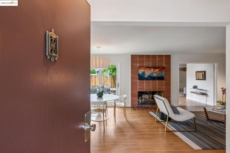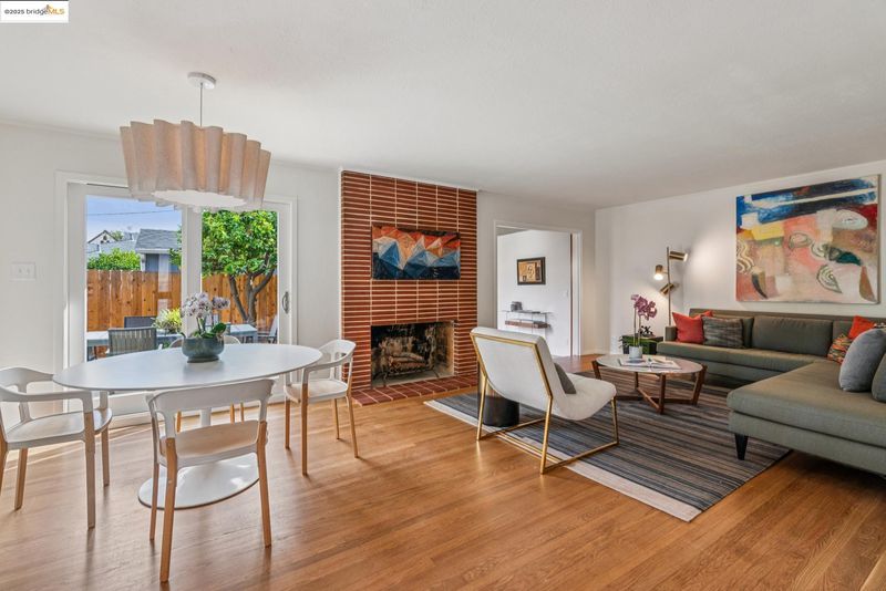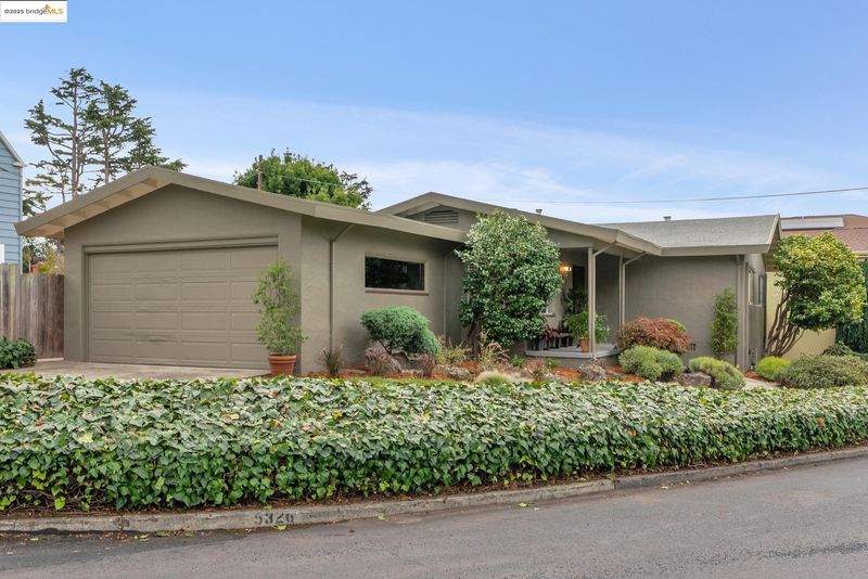 This updated and level-in mid-century modern home on sweet Silva leaves little to be desired! Featuring a spacious kitchen with charming eat-in nook, a classic floor-to-ceiling brick fireplace in the living room, and an expansive family room with wood paneling and wide glass windows opening up to the private courtyard garden. Thoughtful updates with locally-made Heath and Fireclay tile make this home special. A vintage Wolf range in the kitchen and sculptural fabric chandelier in the dining room make the home unforgettable. Featuring an ideal layout with three bedrooms - one of which is an en suite with walk-in closet - and two bathrooms, a living room and family room that both open into the backyard, and an office nook perfect for work-from-home days! A large two-car garage connects directly to the sunny kitchen, and laundry is located here as well. Located in one of El Cerrito’s best neighborhoods, 5326 Silva Avenue is near Mira Vista and Poinsett Parks, a quick jaunt to shopping and retail, and easy commuter access for those who need it.