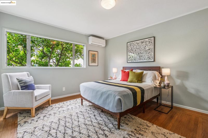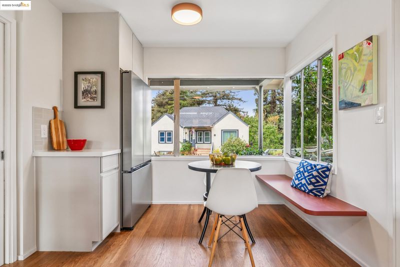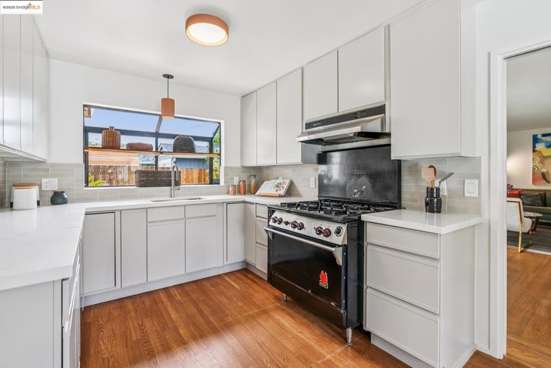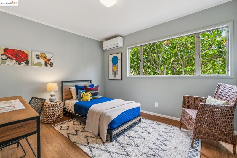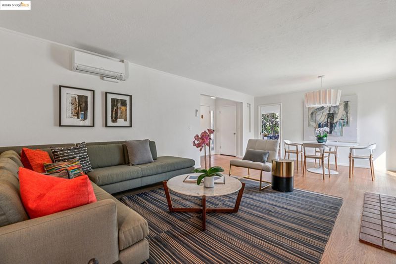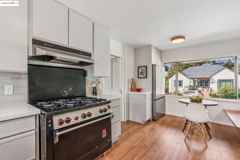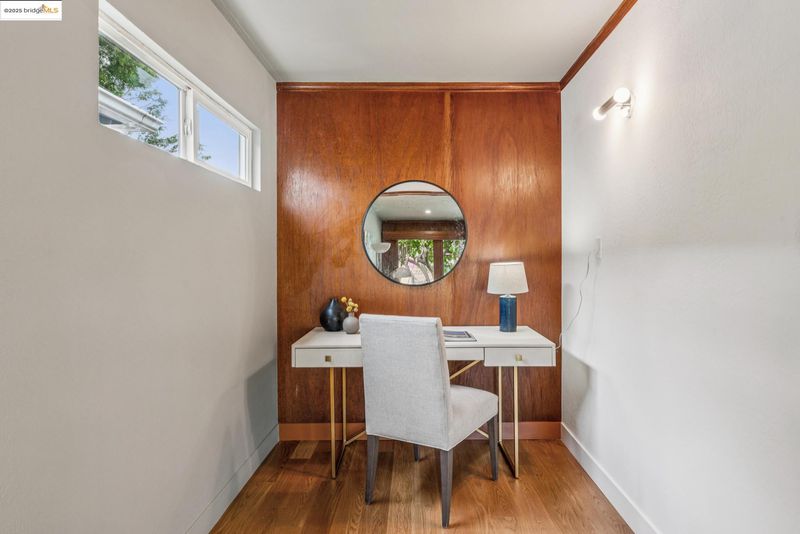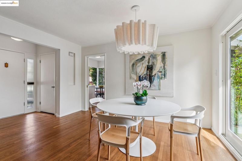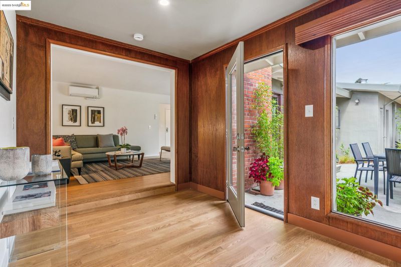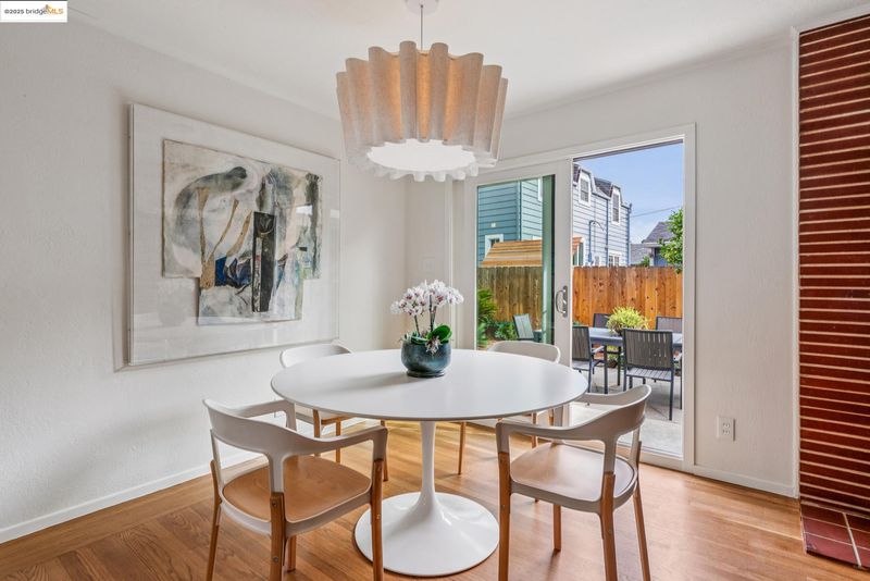This updated and level-in mid-century modern home on sweet Silva leaves little to be desired! Featuring a spacious kitchen with charming eat-in nook, a classic floor-to-ceiling brick fireplace in the living room, and an expansive family room with wood paneling and wide glass windows opening up to the private courtyard garden. Thoughtful updates with locally-made Heath and Fireclay tile make this home special. A vintage Wolf range in the kitchen and sculptural fabric chandelier in the dining room make the home unforgettable. Featuring an ideal layout with three bedrooms - one of which is an en suite with walk-in closet - and two bathrooms, a living room and family room that both open into the backyard, and an office nook perfect for work-from-home days! A large two-car garage connects directly to the sunny kitchen, and laundry is located here as well. Located in one of El Cerrito’s best neighborhoods, 5326 Silva Avenue is near Mira Vista and Poinsett Parks, a quick jaunt to shopping and retail, and easy commuter access for those who need it.