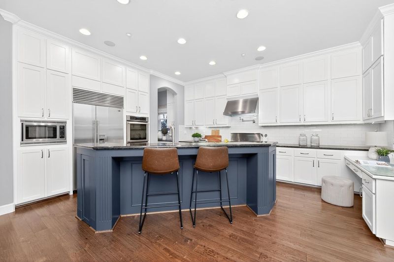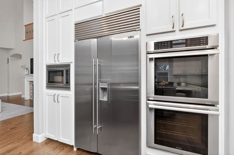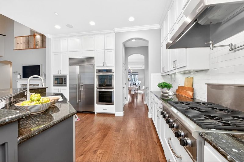 - Dishwasher, Double Oven, Gas Range, Microwave, Oven, Refrigerator, 220 Volt Outlet, Stone Counters, Eat-in Kitchen, Disposal, Gas Range/Cooktop, Kitchen Island, Oven Built-in, Pantry