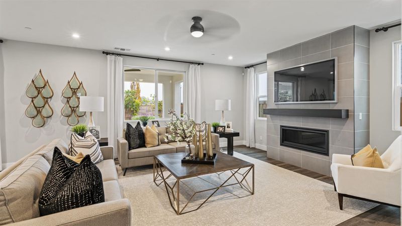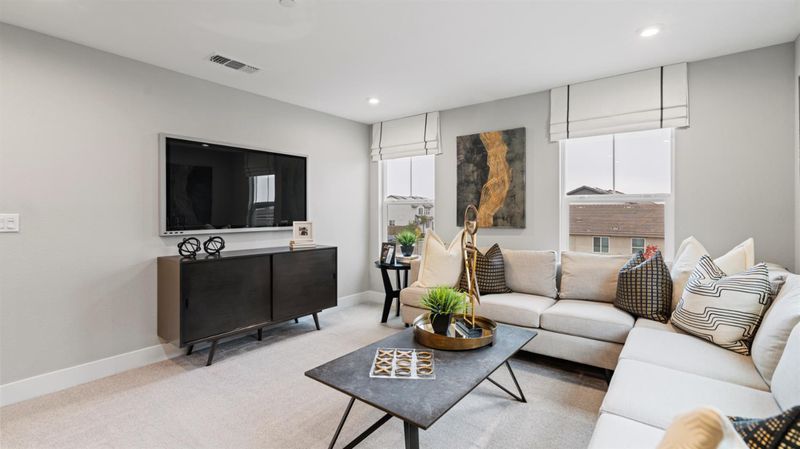 On the main floor of this must-see model home, you'll find a great room boasting added windows and a fireplace with a mantel, and an open dining room that flows into a well-appointed kitchen featuring white quartz countertops, a center island, a walk-in pantry and a double oven. You'll also appreciate a mudroom with built-in cabinets, a private study with an extra window, a full bath with a shower, and an extended covered patio. Upstairs, discover a deluxe laundry, a versatile loft, three generous bedrooms and a shared bath. A welcoming primary suite boasting additional windows, an immense walk-in closet and a private bath rounds out the floor. Luxury vinyl plank flooring and a 2-car garage are also included. Home has been virtually staged