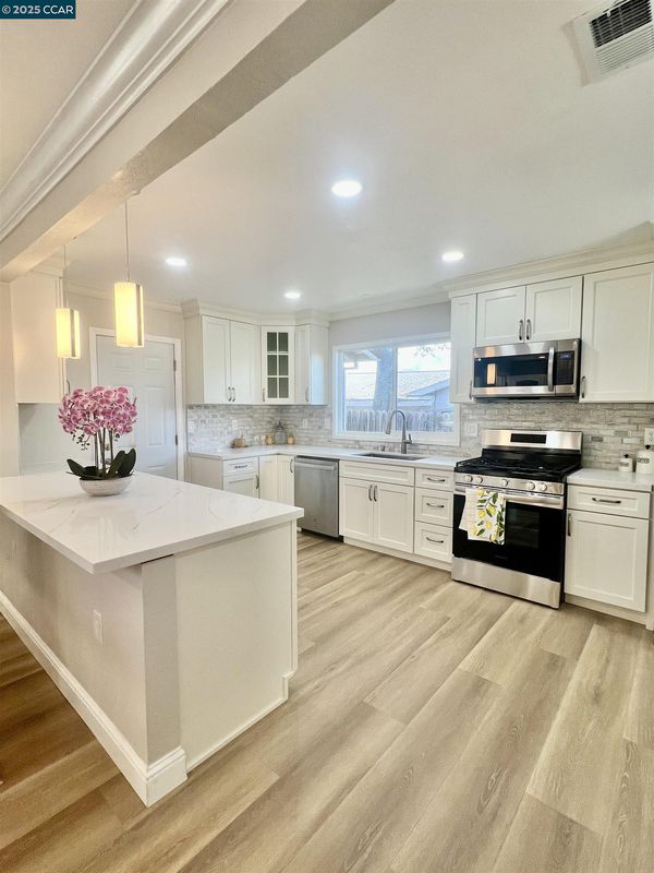 Stunning Newly Remodeled Modern Home with 4 bedrooms & 2 baths. Step into this beautifully remodeled home that has been thoughtfully updated with brand-new kitchen featuring sleek new cabinets and gorgeous countertops. Expansive windows throughout the house bathe each space in natural light, creating an airy and inviting atmosphere. The entire home boasts brand-new flooring, complemented by fresh paint inside and out, enhancing its modern charm. Designed with an open-concept layout, this home offers a seamless flow, making every corner feel peaceful yet exciting to furnish and design. You'll also find a spacious front and back yards, giving you plenty of room to create your own dream outdoor space. Let your imagination run wild and make this stunning modern home your own!!
