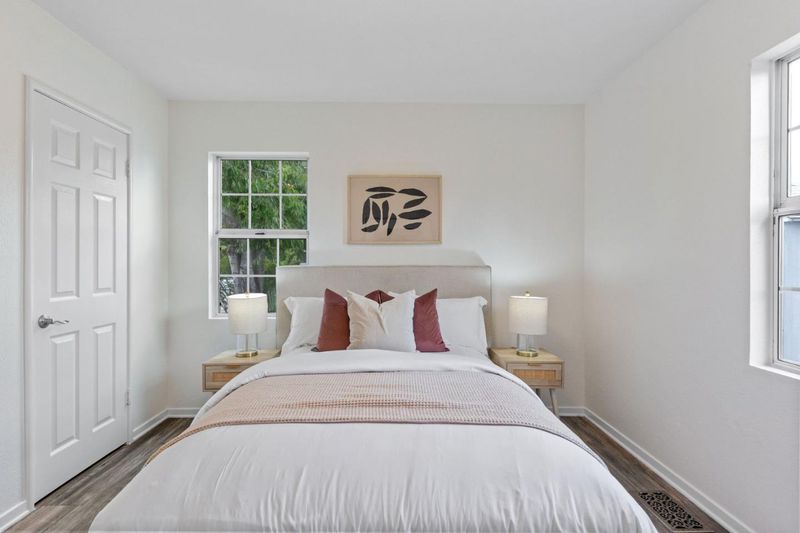 Welcome to 2204 Lobert St a rarely available gem offering 886 sq. ft. of thoughtfully designed living space on a spacious 6,486 sq. ft. corner lot. This charming home features an open-concept main floor where the living, dining, and kitchen areas flow seamlessly together, perfect for modern living and entertaining. Upgrades include central heating & AC w/ 2-ton condenser (installed in 2020), LED lighting throughout, freshly painted interior & exterior, nest cameras, doorbell, and thermostat ready for next owner. Blown-in insulation on exterior walls, finished hardwood floors, tile and laminate, Kitchen with upgraded stone & butcher block counters, overhead microwave oven, French-door refrigerator. Attached garage with high efficiency washer & dryer, built-in work table, and belt drive Wi-Fi garage opener. Additional covered carport and side yard gated access perfect for recreational vehicle parking. Large low maintenance yard with automated sprinklers (6-station controller) and fruiting trees (oranges, lemons, figs), flowering bushes throughout, and convenient storage shed. Convenient location 15-minute walk to BART, Trader Joe's and Farmer's Market.