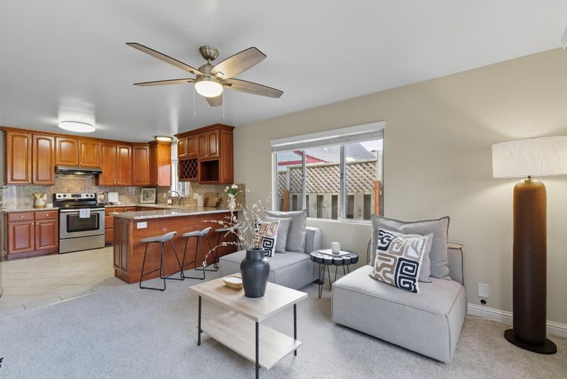 This inviting 3-bedroom, 2-bathroom home offers a thoughtful floor plan with timeless appeal. A formal entry opens to the spacious living room with dining area, large picture windows and a cozy fireplace. The open-concept kitchen and family room feature a breakfast bar and direct access to the private patio.The primary suite with dual closets is tucked down the hall, while two additional bedrooms share a full hall bathroom. An attached two-car garage provides convenient parking, extra storage, and includes laundry facilities. Located in highly sought-after San Carlos, this home is served by top-rated schools and is just moments from the vibrant downtown restaurants and shops. Enjoy nearby parks, scenic hiking trails, and easy access to streamlined commute routes.