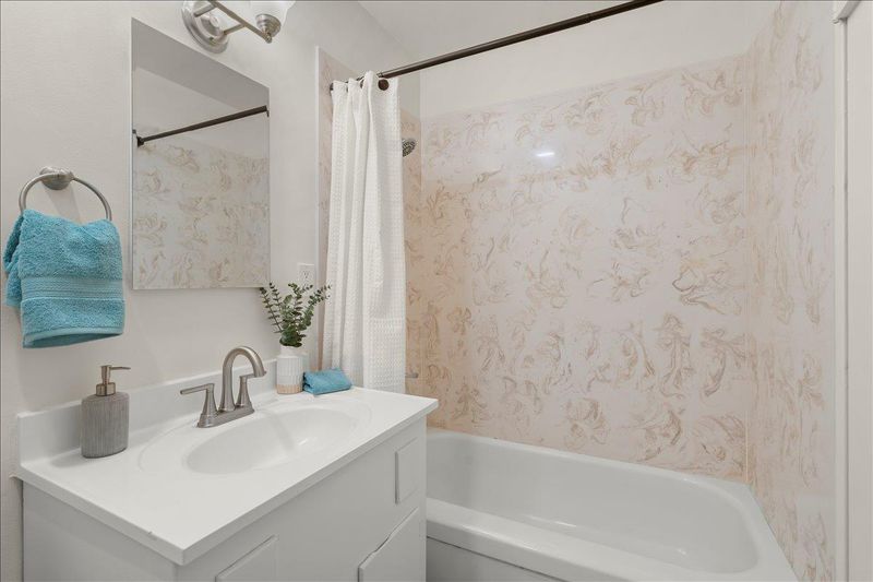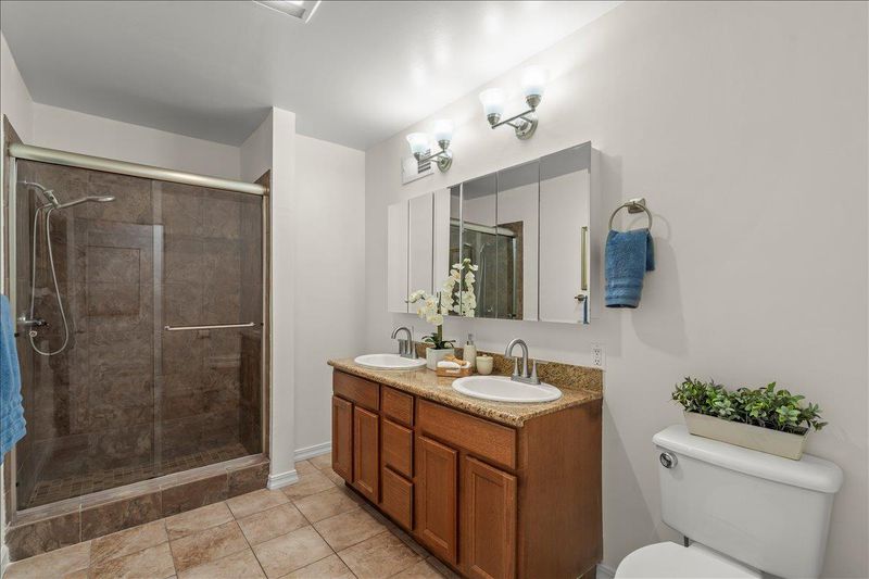 - Primary - Stall Shower(s), Shower and Tub, Showers over Tubs - 2+, Solid Surface, Stall Shower, Tile