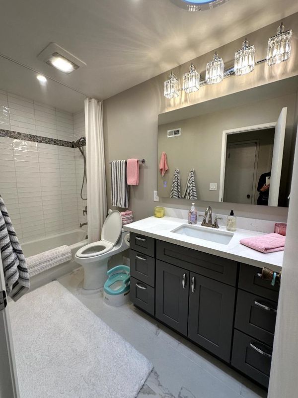 - 220 Volt Outlet, Countertop - Synthetic, Dishwasher, Garbage Disposal, Island with Sink, Oven Range - Electric, Refrigerator