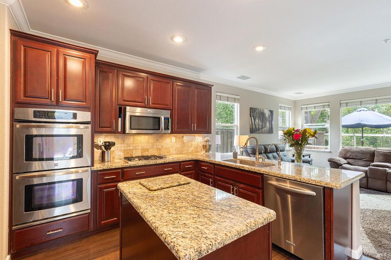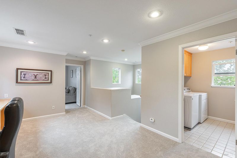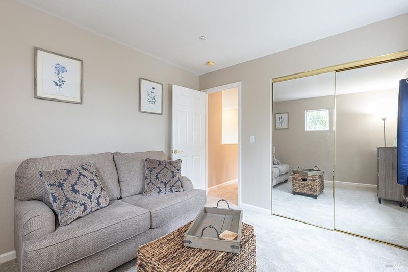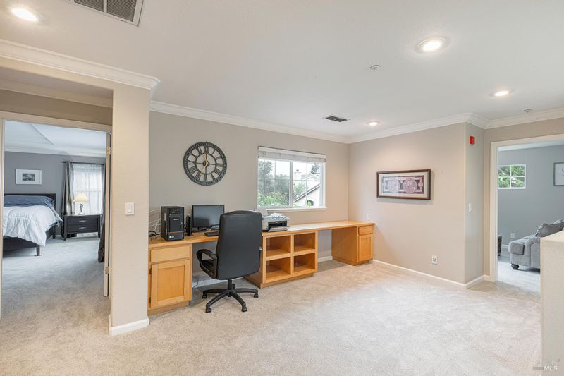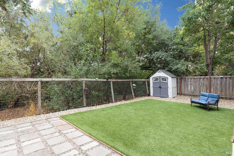 Set on a quiet lane shared with just one neighbor, this home offers both privacy and convenience. Inside, enjoy fresh paint, new carpet, and elegant details like crown molding, wainscoting, and custom shutters. The updated kitchen features pull-out shelving, while the spacious primary suite with tray ceiling provides a relaxing retreat. A built-in office nook adds flexibility for work or study. Outside, the backyard is bordered by a private, serene creek-perfect for peaceful outdoor living. Close to schools, shopping, and medical facilities, this home blends comfort, style, and the best of Napa Valley living.