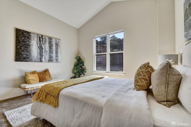 Welcome home to 163 Stoneridge. This top-floor two-bedroom, two-bathroom condominium offers a perfect balance of comfort, convenience, and style. Flooded with natural light, the open living space is centered around a cozy fireplace, creating an inviting setting for both relaxing evenings and entertaining guests. A combined living + dining area maximize space for your enjoyment. The well-designed floor plan features a private primary suite complete with an ensuite bathroom, providing a peaceful retreat. A second spacious bedroom and full bath offer flexibility for guests, a home office, or personal use. Large windows throughout enhance the sense of openness while capturing serene outlooks. Private balcony is off the living room. Washer and Dryer in unit. Two dedicated garaged parking spaces with interior access. Located in a desirable neighborhood, this residence is just moments from shopping, dining, and everyday conveniences, with quick access to 101 for an easy commute or public transportation steps away. The combination of top-floor privacy, thoughtful layout, and unbeatable location makes this home an exceptional opportunity not to be missed. 163 Stoneridge, when you're here, you're home.