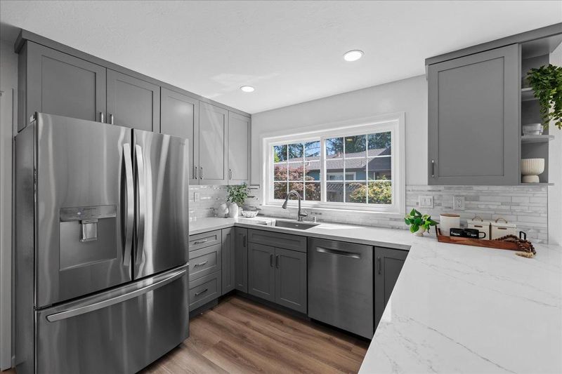 - Countertop - Quartz, Dishwasher, Garbage Disposal, Microwave, Oven Range - Gas, Refrigerator