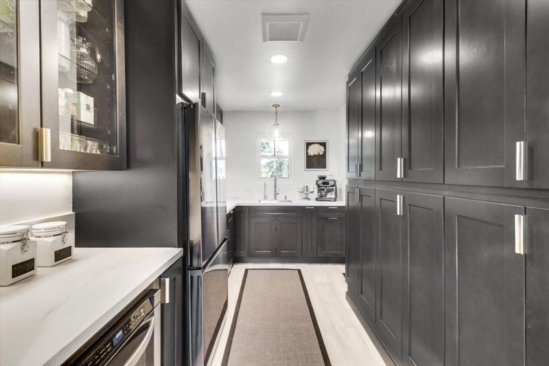 - 220 Volt Outlet, Cooktop - Gas, Countertop - Other, Dishwasher, Exhaust Fan, Freezer, Garbage Disposal, Hood Over Range, Island with Sink, Microwave, Oven - Double, Oven - Self Cleaning, Pantry, Refrigerator, Wine Refrigerator