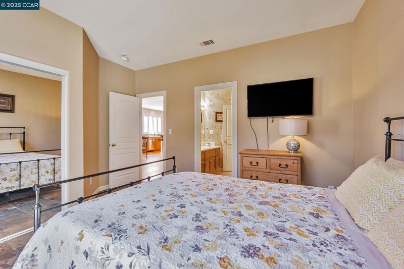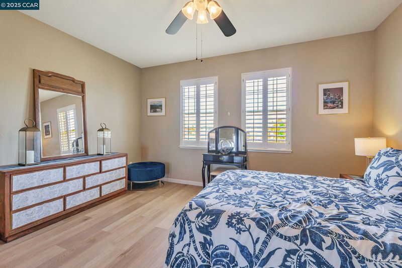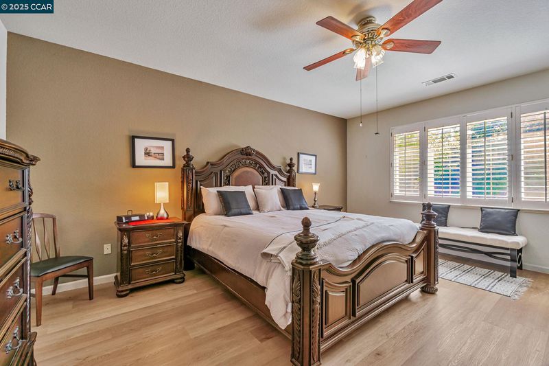 Located in the beautiful desirable area of Black Diamond Estate. This lovely 4-bedroom, 3 full bath plus large bonus-room home is situated in a hard-to-find Cul-De-Sac area with little traffic. Too many wonderful features to describe here! The grand entry makes an immediate statement with its elegant spiral staircase. Every room is flooded with natural light creating a radiant and welcoming atmosphere in the home. You’ll appreciate the magnificent kitchen with beautiful stone surfaces and an island that doubles as a casual dining space. There’s more than enough cabinet space, making meal prep and cleanup a breeze. Step into the serene primary bedroom suite with plantation shutters for enhanced light control and privacy. Enter outside into a private resort-style oasis, where a sparkling pool with amazing waterfall, integrated spa and full outdoor entertainment island awaits you. There’s a smart sound system you control on an app for playing your favorite music while relaxing in your spa, pool, barbequing or just enjoying your day on the patio listening to the waterfall! No back neighbors so lots of privacy. This amazing home has solar for the home and solar for the gorgeous pool. Included is Home Warranty Platinum Plan with Pool and Spa Warranty Plan.