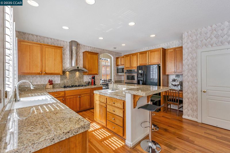 - Dishwasher, Gas Range, Microwave, Refrigerator, Gas Water Heater, Stone Counters, Eat-in Kitchen, Disposal, Gas Range/Cooktop, Kitchen Island
