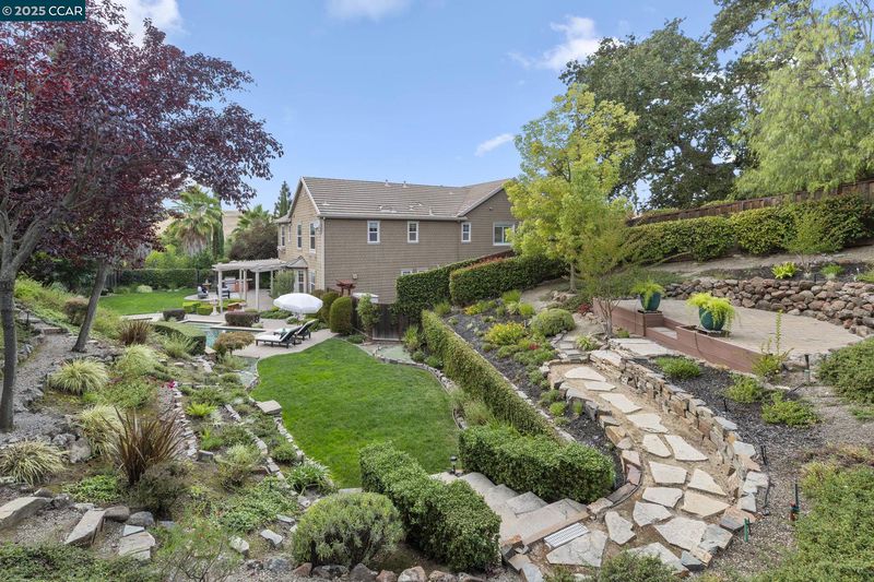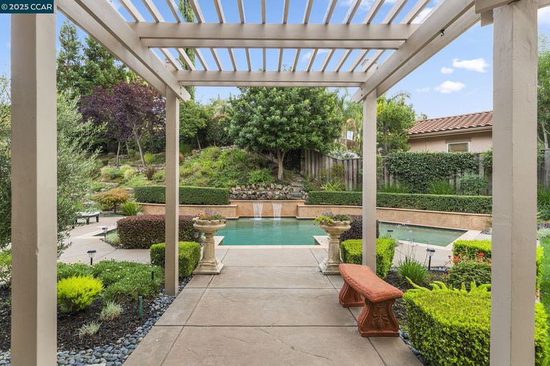 Perched on a prime cul-de-sac in the coveted Stone Valley Oaks neighborhood, this meticulously maintained & stunning home exudes East Coast charm. Set on half an acre of beautifully landscaped grounds, it's framed by a majestic Oak tree, offering a picturesque setting. The home features high ceilings, light & bright, open floor plan with 4 spacious bedrooms, 3.5 baths, a dedicated office on the main floor, spacious primary suite w/retreat for in-home gym or flex space. One en suite bed w/bath. 2 additional spacious bedrooms share a bathroom. Chef's kitchen is a showstopper w/ Cherrywood cabinetry, SS appliances, center island & natural stone countertops, all seamlessly flowing into the adjacent family room with fireplace and walls of windows. Formal dining room w/French doors to a cozy courtyard w/fountain. An entertainer's dream backyard boasting a sparkling pool & waterfall, large grassy play areas, multiple patios, BBQ area, mature landscaping, and a trellis-covered dining area. The lush, expansive & private backyard invites endless possibilities for outdoor enjoyment. This property embodies the essence of California-style living, with nearby opportunities for hiking and biking. Close to top-rated SRVUSD schools, just minutes to Monte Vista High School, shopping & restaurants.