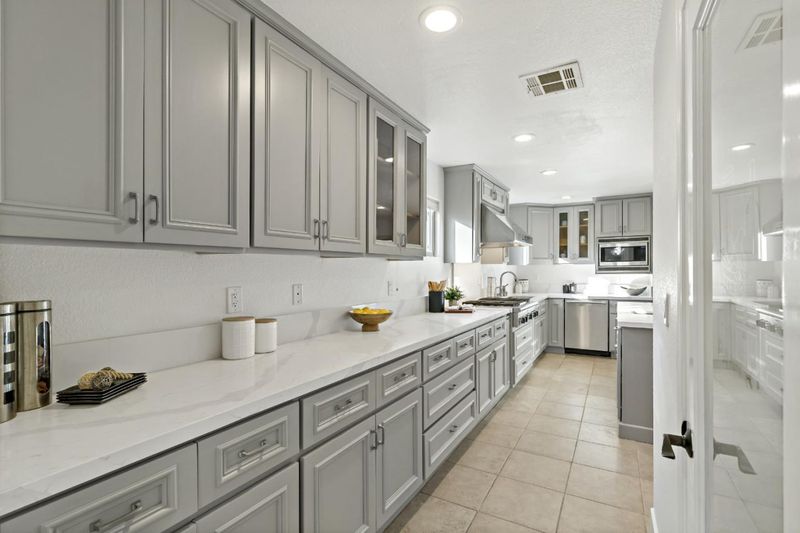 - Island with Sink, Pantry, Oven Range - Gas, Wine Refrigerator, Refrigerator, Trash Compactor, Oven Range - Built-In, Gas