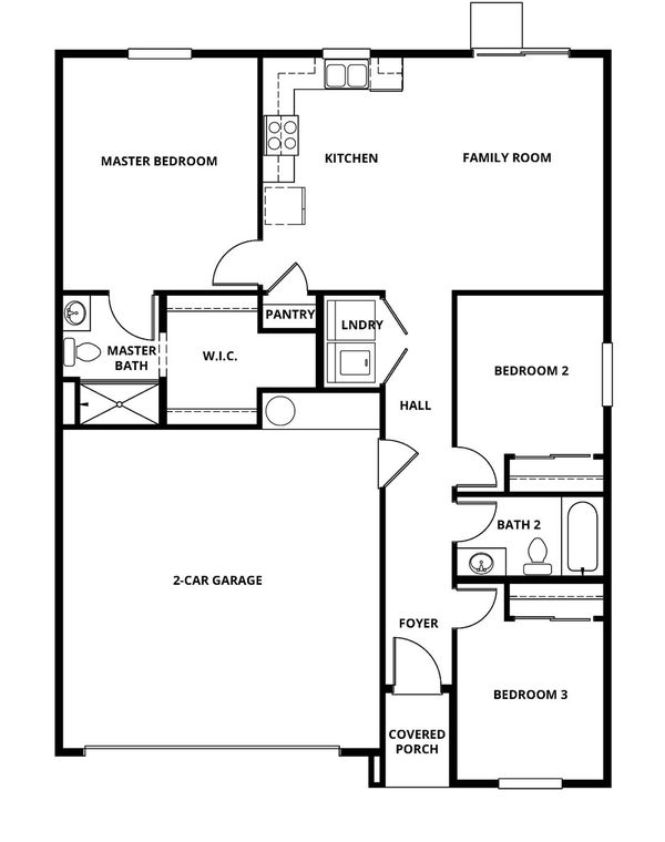 The Avila floor plan presents a thoughtfully designed single-story home that effortlessly combines functionality with style. Featuring three spacious bedrooms, this floorplan is ideal for both comfortable living and entertaining. The open layout enhances the sense of space, with the kitchen seamlessly flowing into the family and dining areas, creating a harmonious and inclusive environment. The kitchen boasts modern stainless-steel appliances and elegant plank flooring, offering both practicality and sophistication. The master bathroom is a luxurious retreat, highlighted by a large vanity and a sleek step-in shower. For added convenience, the secondary bathroom includes a versatile tub/shower combination.