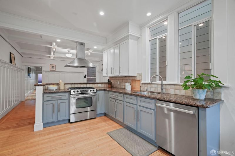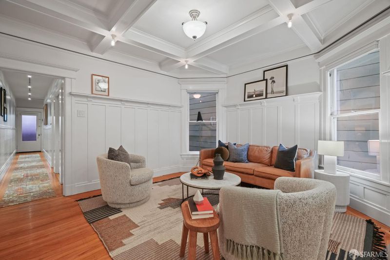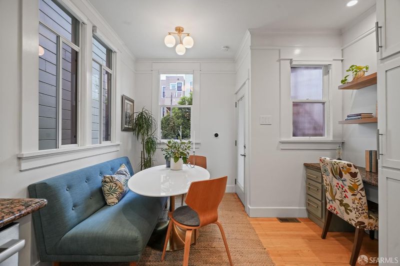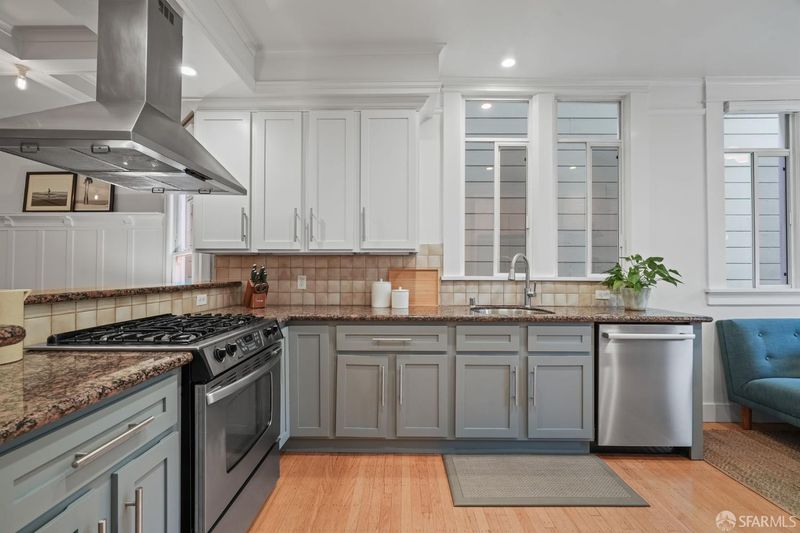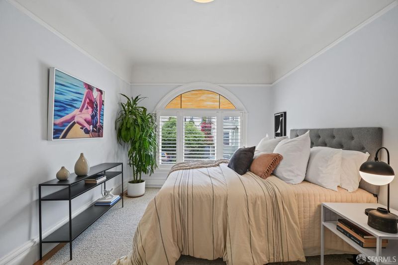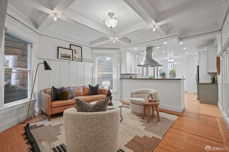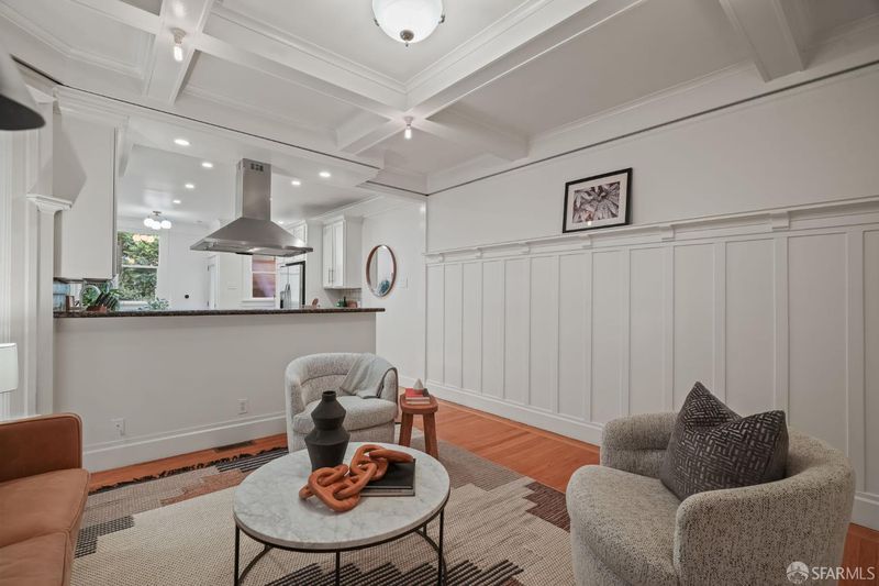 Being 116 years old never looked so good. Ideally located on a quiet, tree-lined street between Guerrero and Valencia, this bright, remodeled two-bedroom flat blends classic San Francisco charm with a modern, polished twist. At the back of the home, the open concept kitchen is ready for its close-up, featuring a breakfast bar, ample cabinetry, premium appliances, and a dining nook that doubles as a chic workspace - perfect for all your culinary or creative moments. Sunlight floods the living room, highlighting wainscoting, box-beam ceilings, and original hardwood floors that give the space warmth and character. The larger of the two bedrooms is the star of the show with stained glass windows, a decorative fireplace, and a walk-in closet. The second bedroom has direct en-suite access to the full bath off the hall. Additional highlights include in-unit laundry, one car parking, dedicated storage, seismic retrofitting and a sunny shared garden - perfect for relaxing mornings, sunset wine, or indulging in your green thumb. Set in vibrant Mission Dolores, you're just steps from Dolores Park, Bi-Rite Creamery, Tartine Bakery, MUNI, BART, and the endless parade of shops and restaurants along Valencia Street.