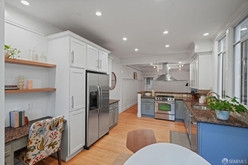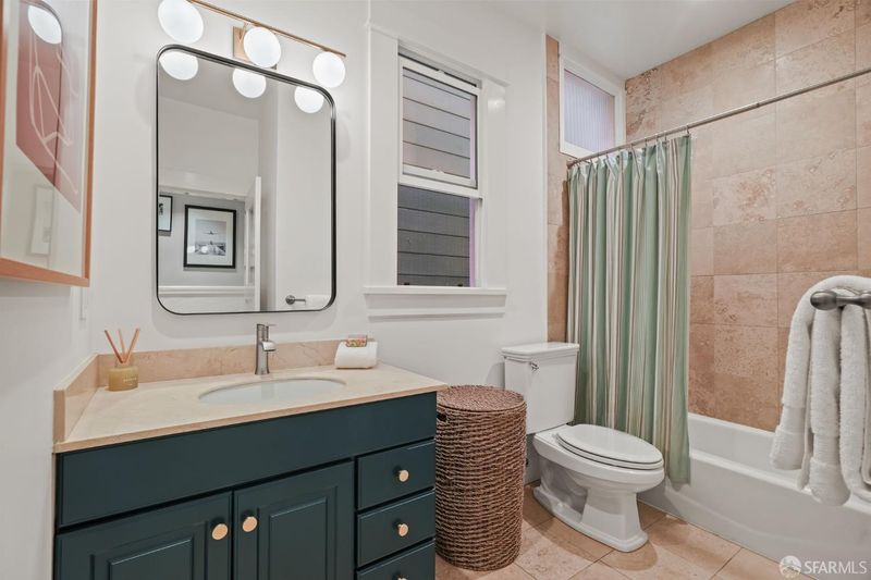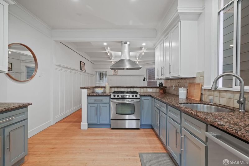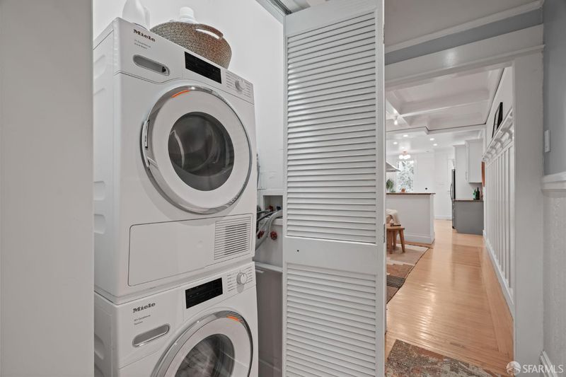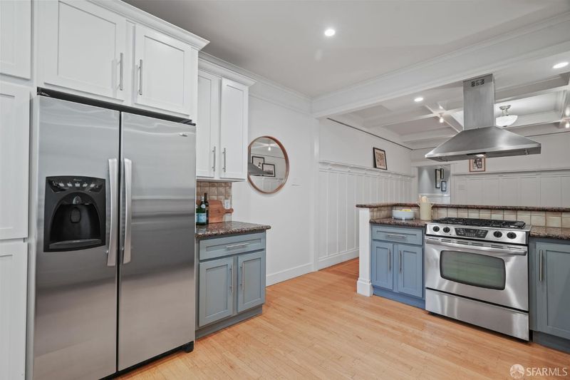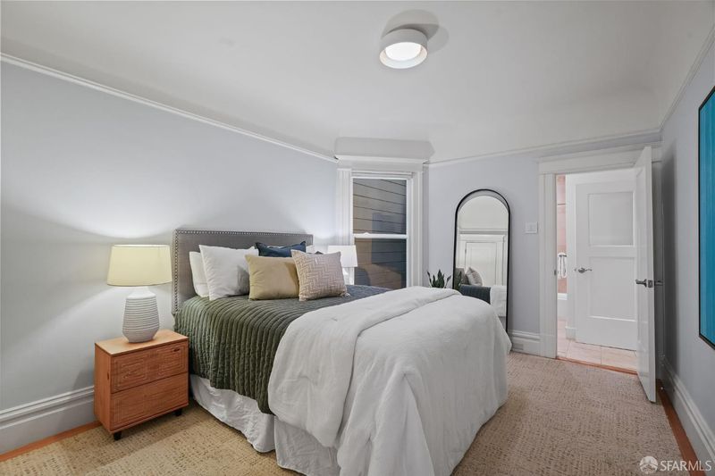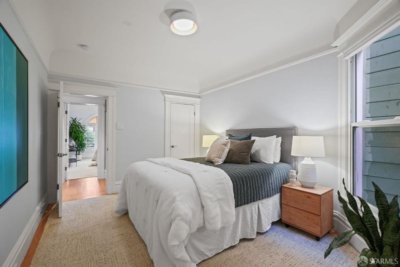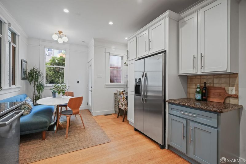 Being 116 years old never looked so good. Ideally located on a quiet, tree-lined street between Guerrero and Valencia, this bright, remodeled two-bedroom flat blends classic San Francisco charm with a modern, polished twist. At the back of the home, the open concept kitchen is ready for its close-up, featuring a breakfast bar, ample cabinetry, premium appliances, and a dining nook that doubles as a chic workspace - perfect for all your culinary or creative moments. Sunlight floods the living room, highlighting wainscoting, box-beam ceilings, and original hardwood floors that give the space warmth and character. The larger of the two bedrooms is the star of the show with stained glass windows, a decorative fireplace, and a walk-in closet. The second bedroom has direct en-suite access to the full bath off the hall. Additional highlights include in-unit laundry, one car parking, dedicated storage, seismic retrofitting and a sunny shared garden - perfect for relaxing mornings, sunset wine, or indulging in your green thumb. Set in vibrant Mission Dolores, you're just steps from Dolores Park, Bi-Rite Creamery, Tartine Bakery, MUNI, BART, and the endless parade of shops and restaurants along Valencia Street.