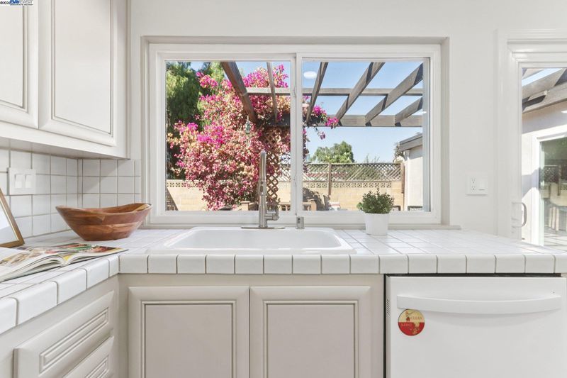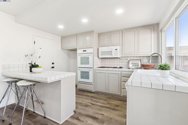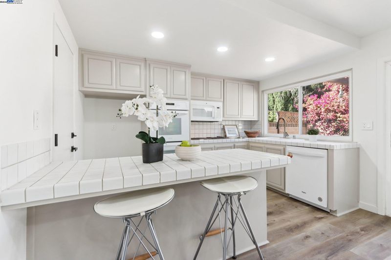 - Dishwasher, Electric Range, Breakfast Bar, Tile Counters, Eat-in Kitchen, Electric Range/Cooktop, Disposal